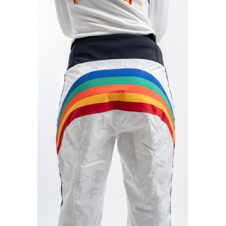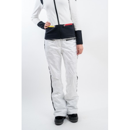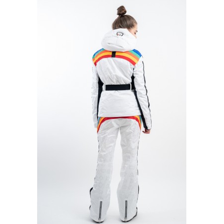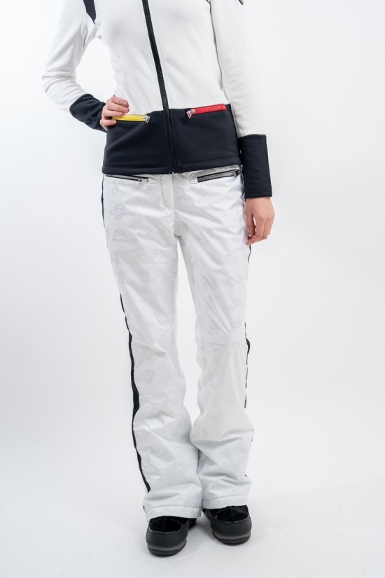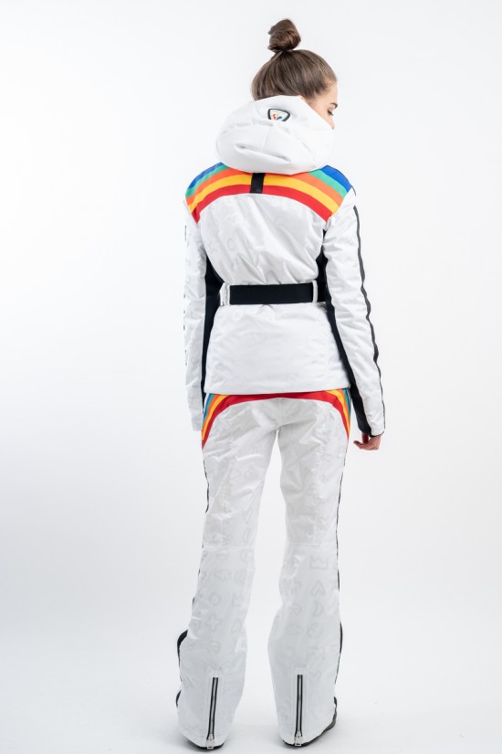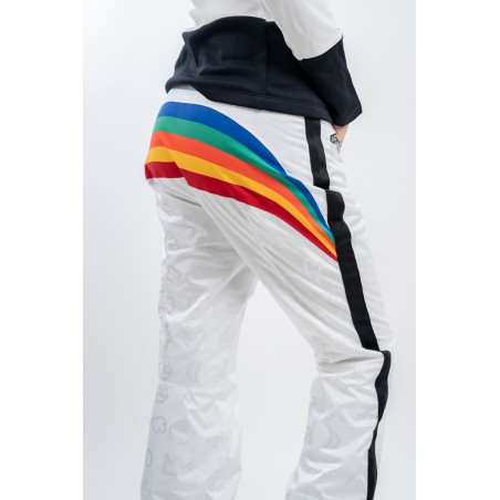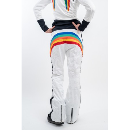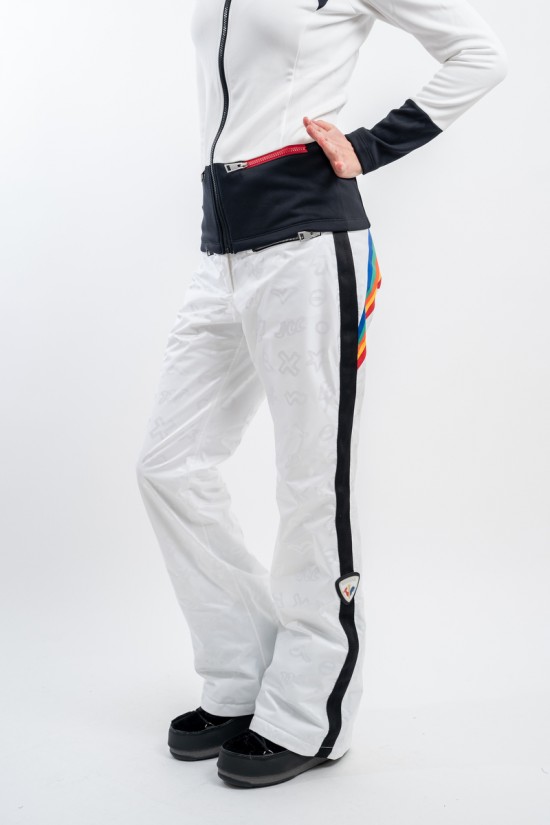 Born from the collaboration of ROSSIGNOL with the designer Jean-Charles de Castelbajac the new line, creative and surprising, Ski in Sky. Characterized by a game of contrasts between shapes and colors that embody all the imagination of the artist. The W rainbow ski pants are made of 4-way stretch fabric to ensure maximum freedom of movement. The high waist with the elastic insert ensures optimal comfort. Padded in soft cotton wool HOT AIR is warm and suitable in all conditions.
