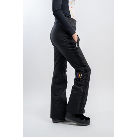W Judy is the ski pants of ROSSIGNOL made in collaboration with Jean-Charles de Castelbajac. 4-way stretch fabric and high waist with stretch detail ensure optimal comfort and maximum freedom of movement. Padded in HOT AIR cotton paddy, warm and comfortable in all conditions.