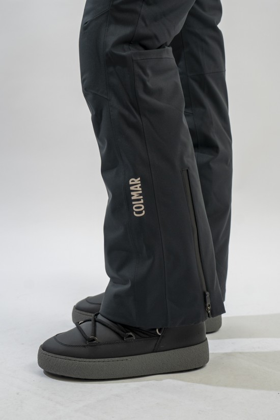 Responsible and sustainable, the COLMAR ski pants, belonging to the COLMAR Green Path project, have been designed with full respect for the environment. Outer fabric, lining and padding are elasticated thus ensuring optimal comfort and full freedom of movement. Waterproof and breathable. Warm thanks to the soft wadding padding and the reinforced backrest, to better protect the lumbar area. The adjustment velcro straps at the waist allow for perfect adaptability. Finished with a windproof and snowproof gaiter, it is excellent on the slopes in all conditions.