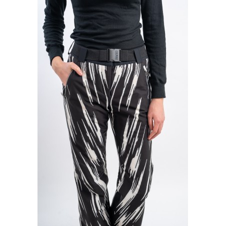 Stretch and padded ski pants in soft stretch wadding for optimal comfort and fit. Highly waterproof and breathable enriched by waterproof camlock zips that guarantee optimal sealing. Warm thanks also to the graphene lining that evenly distributes the heat. Eye-catching graphics. Finished with windproof and anti-snow gaiter and with polar backred, it is excellent on the track in all conditions.