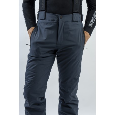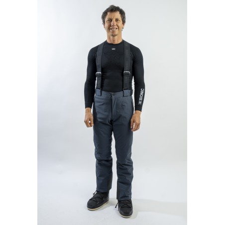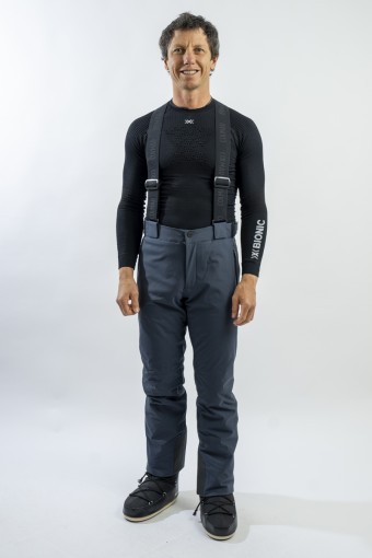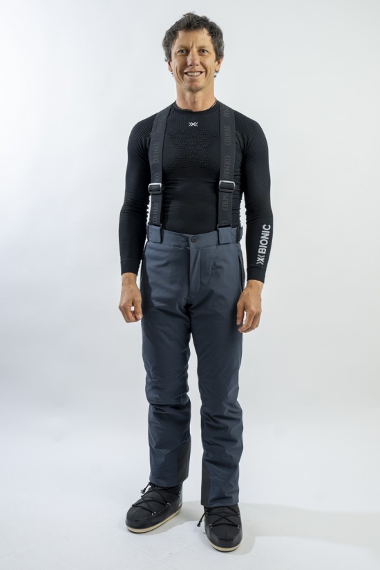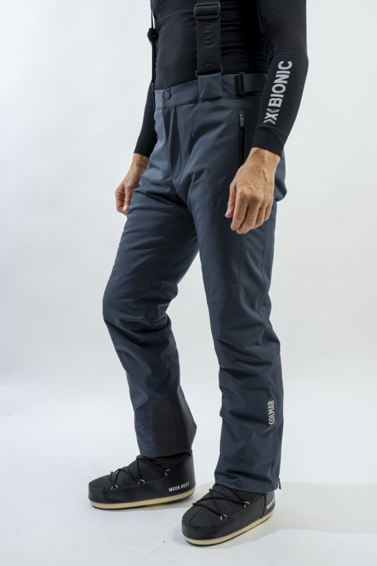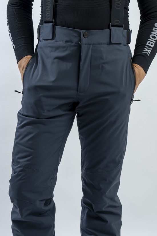 Ski trousers made of eco-sustainable material belonging to the COLMAR Green Path project for the respect of the environment. Outer fabric and stretch cotton wool guarantee maximum freedom of movement and optimal thermal comfort. Regular fit for a comfortable and practical ski pants. The detachable braces and the adjustment glass at the waist allow the garment to adapt to the figure in the best possible way. Finished with windproof and anti-snow gaiter, it is excellent on the track in all conditions.