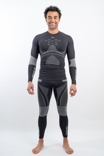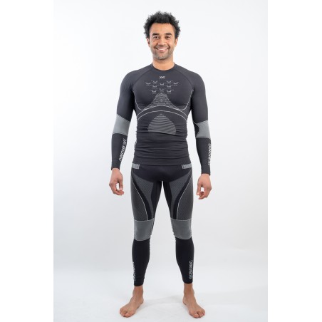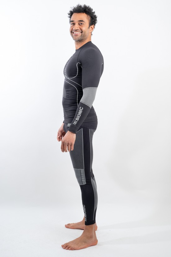 Energy Accumulator pants. Technical underwear with three-dimensional Bionic Sphere System construction. Made with the best technologies. The use of a high-quality polyamide and polyurethane-based yarn combined with the revolutionary 3D construction guarantees very high standards of insulation and breathability. Optimal comfort and fit combined with a champion look. Ideal for cold-temperate climates. Developed in Switzerland produced in Italy.