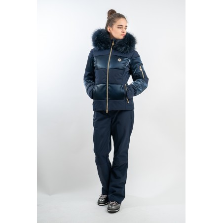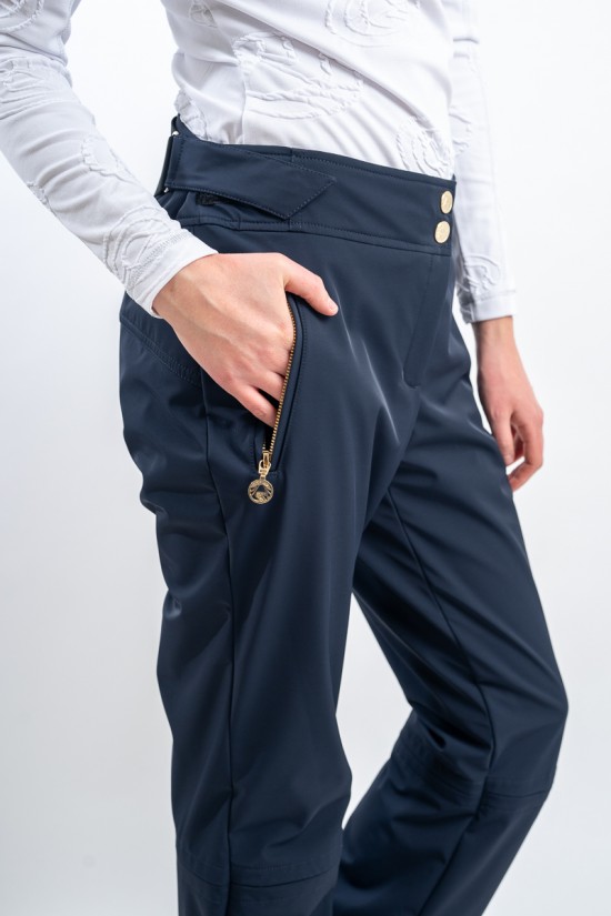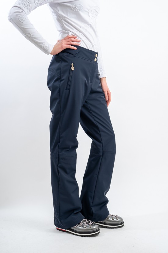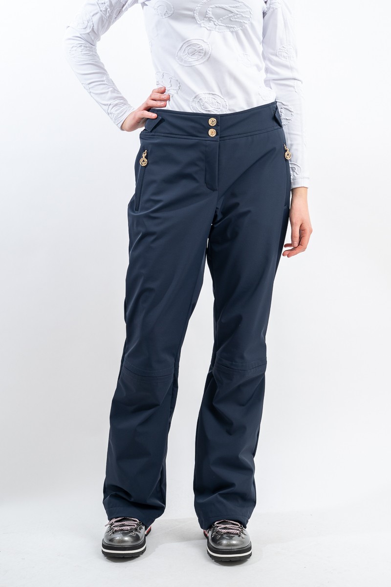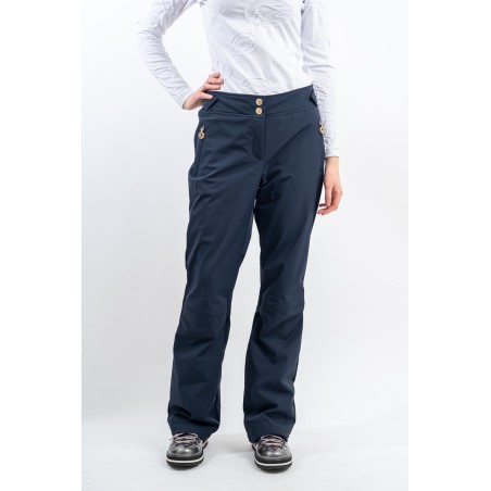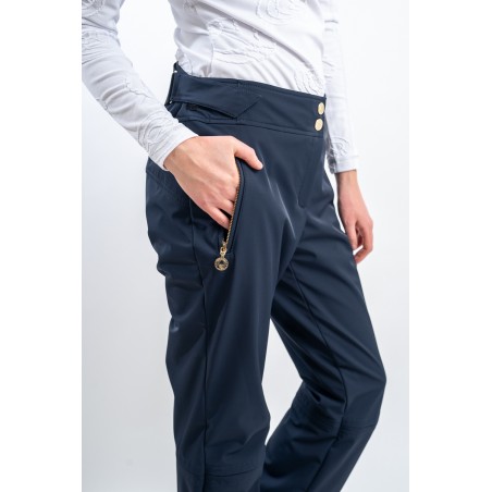 Jonquiere is the ski pants of SPORTALM padded in soft cotton wool and equipped with Recco system. Waterproof and breathable, it is high at the waist for greater protection to the lumbar area. The 4-way stretch fabric allows total freedom of movement. Functional thanks to the practical vertical side pockets and the adjustment zips on the bottom. Regular fit, enriched by shaped seams that guarantee a perfect fit. Embellished with buttons and sliders logged in gold look is ideal to give a touch of style to your days on the snow.