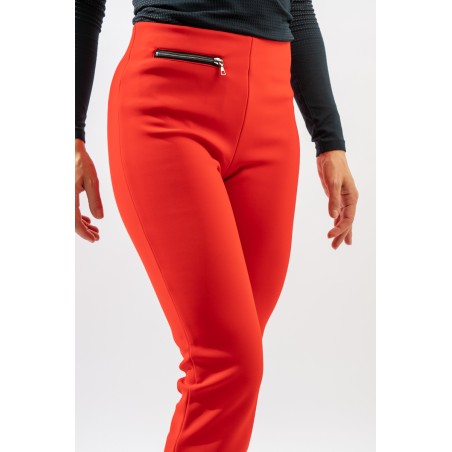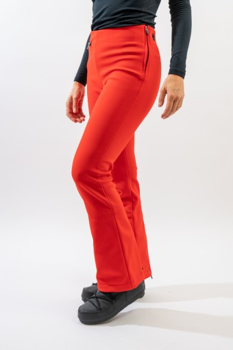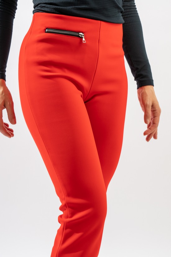 Ski pants in Swiss Schoeller. Wind and water resistant, it is ideal on snow. Comfortable thanks to the high elasticity of the fabric that guarantees total freedom of movement. High waist and equipped with windproof gaiter at the bottom for even greater protection. Lined internally in fleece, it is warm and perfect even on the coldest days.