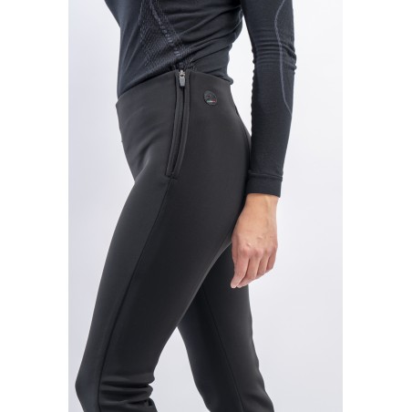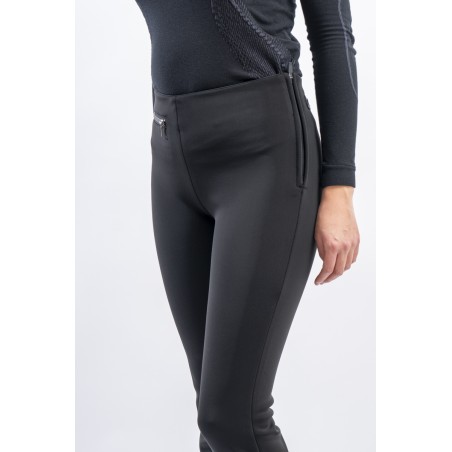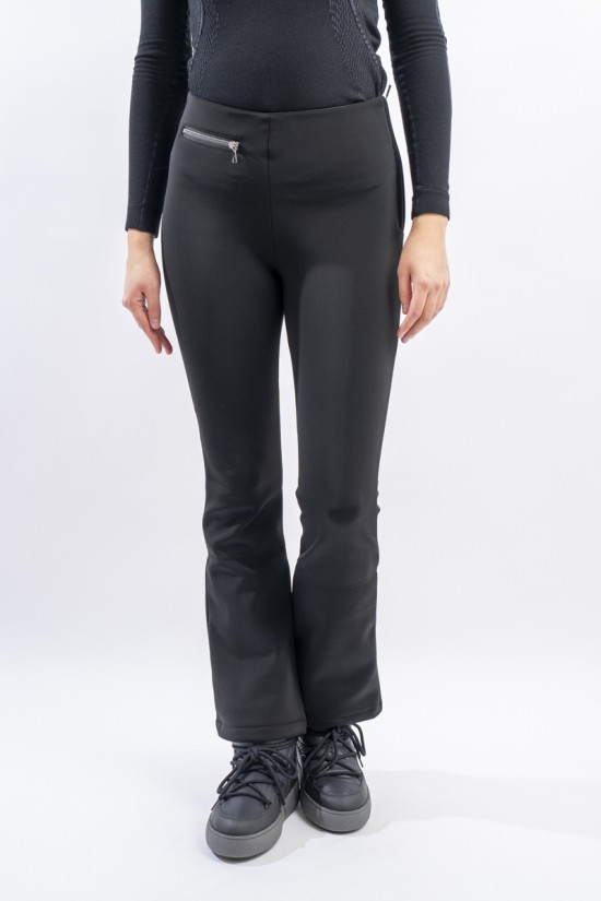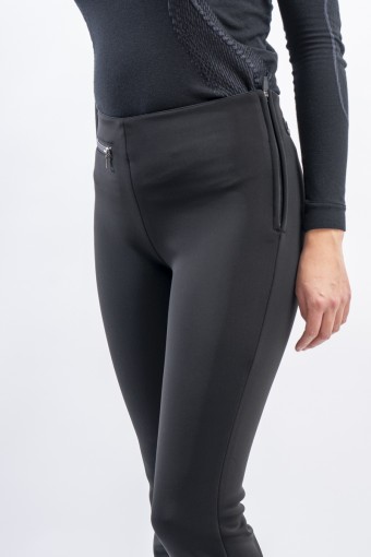 Ski pants in Swiss Schoeller. Wind and water resistant, it is ideal on snow. Comfortable thanks to the high elasticity of the fabric that guarantees total freedom of movement. High waist and equipped with windproof gaiter at the bottom for even greater protection. Lined internally in fleece, it is warm and perfect even on the coldest days.