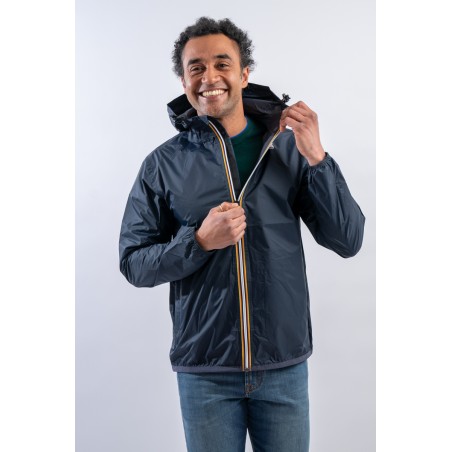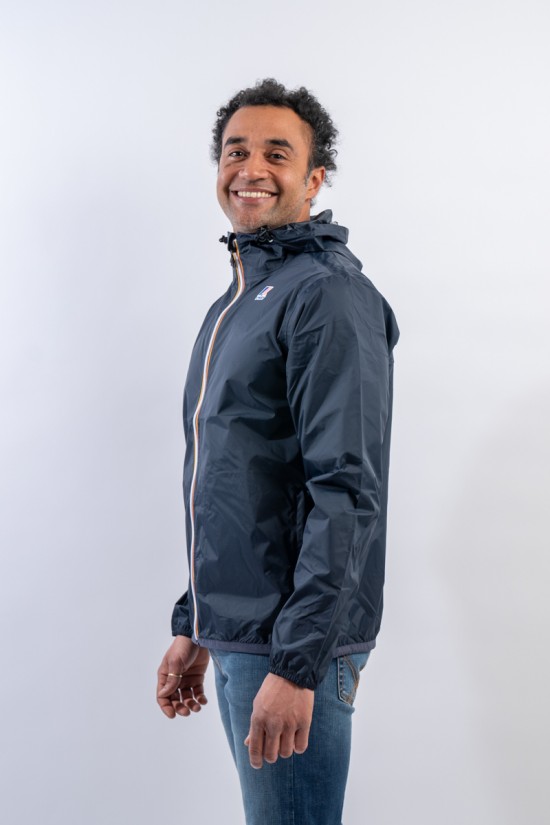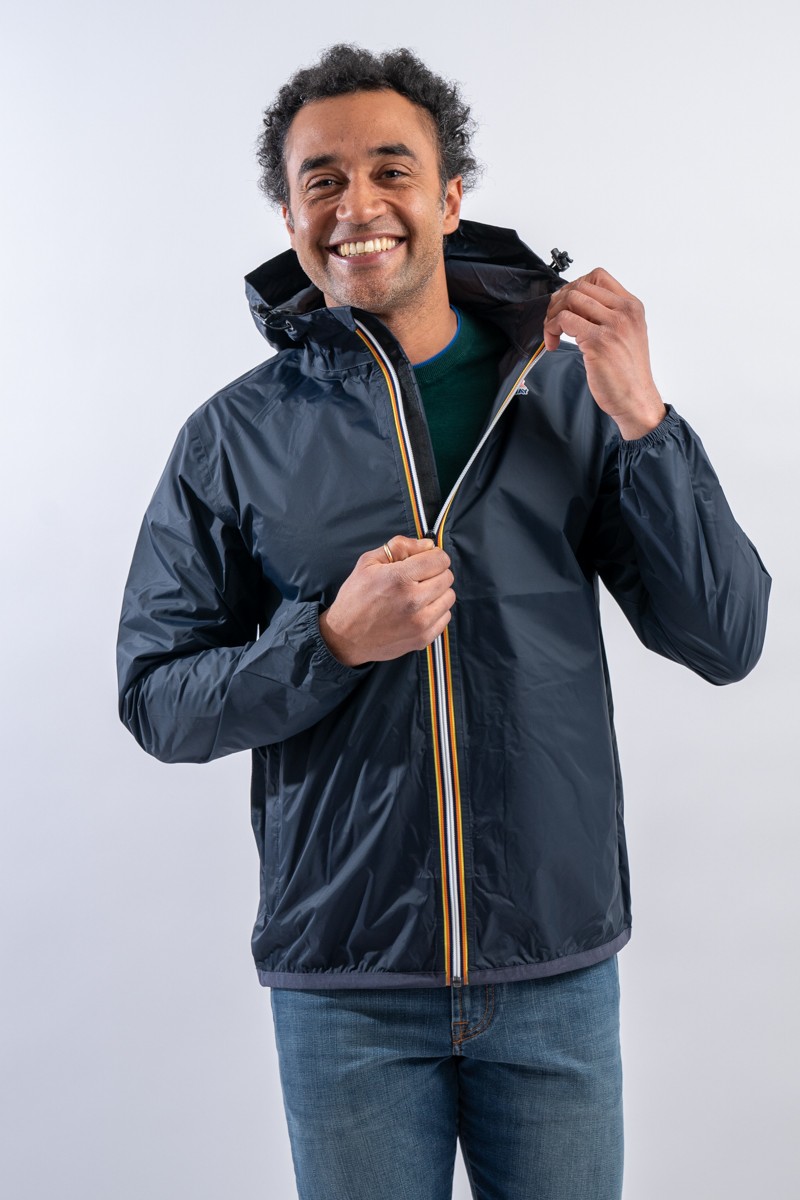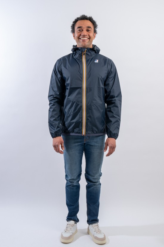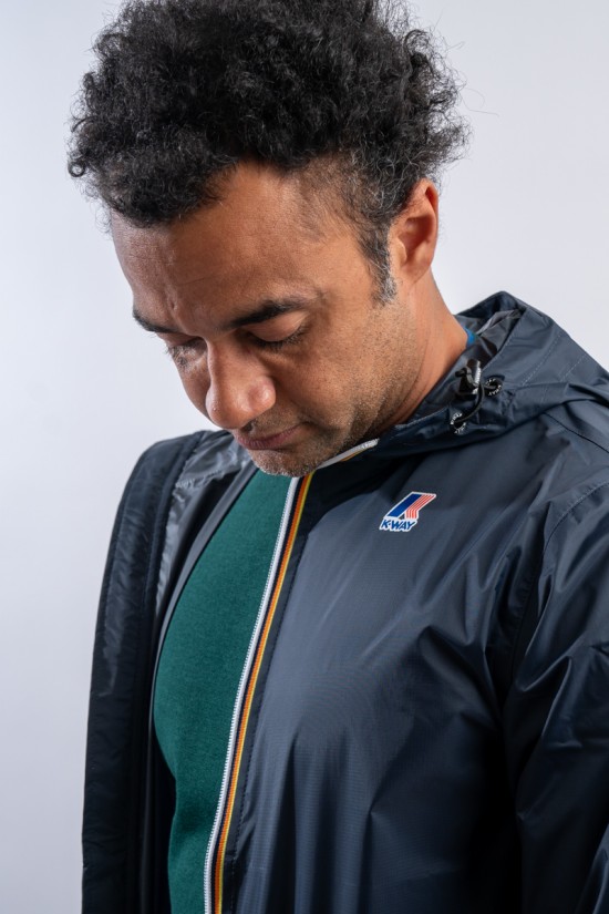Le Vrai 3.0 Claude. Iconic model of the 90s made of ripstop fabric, waterproof and windproof with thermo-taped seams. Fullzip tricolor. Side pockets with zip. Printed logo. Mid-over fit. Folded in your pocket you can carry it as a baby carrier, an excellent ally in your outdoor adventures!
