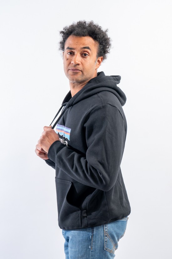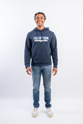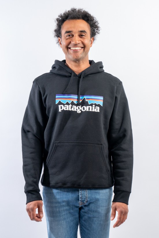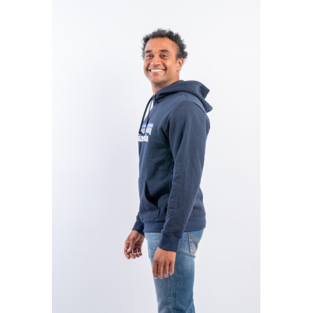 Hoodie made from recycled materials obtained using 30 plastic bottles and about 408 grams of cotton textile waste. Characterized by the maxi print and the hand warmer pocket applied on the front. The ecofriendly system adopted by PATAGONIA saves 95% of water compared to the production of a similar garment.