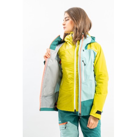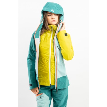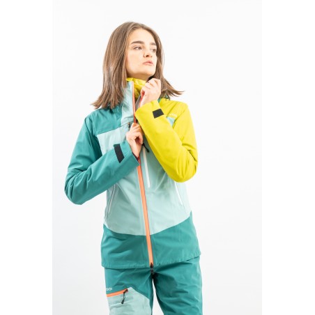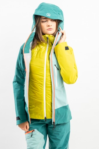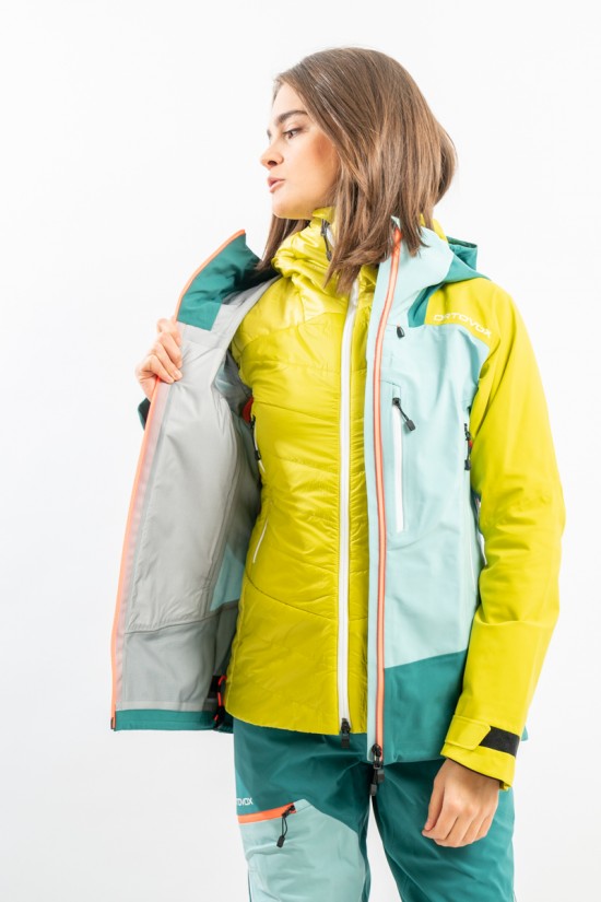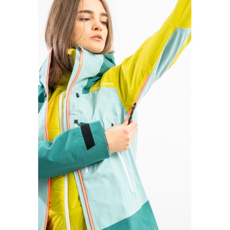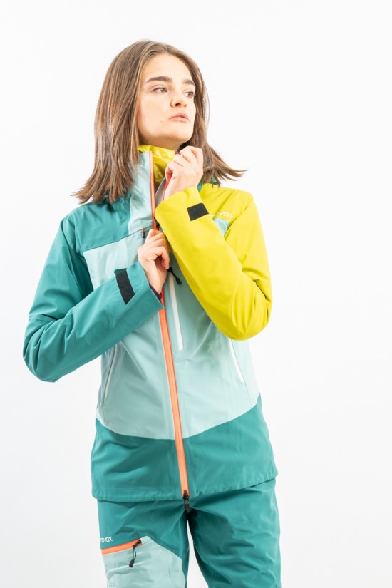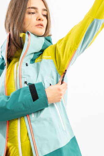 The WESTALPEN 3L JACKET for women is extremely versatile and perfect to use for summer hiking and mountaineering in winter. Toray's sturdy windproof and waterproof DERMIZAX NX outer membrane keeps your body warm and dry. Freedom of movement is particularly important when tackling challenging terrain and it is for this reason that the sleeves and torso are longer. The hood, compatible with the casco, offers special protection, thanks to the soft Merino wool inserts that are pleasant on the skin. ORTOVOX WOOL PROMISED.