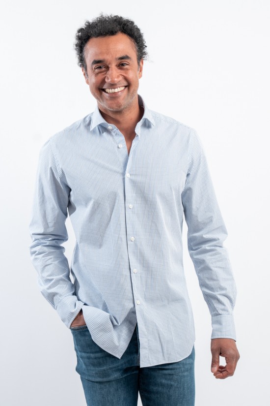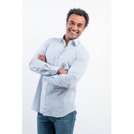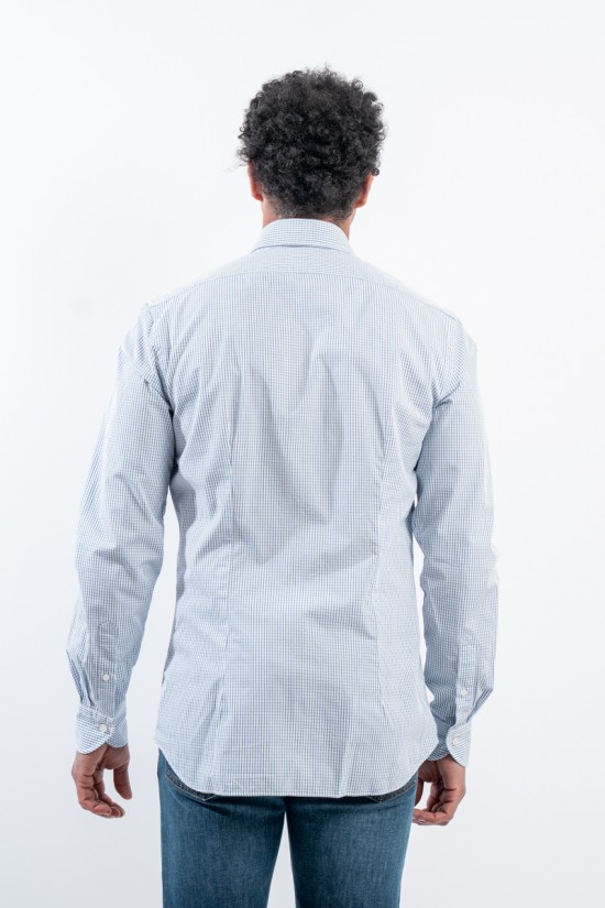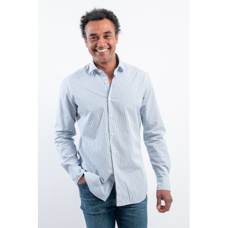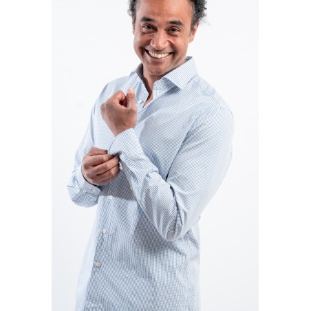 The classic shirt by XACUS stands out for its timeless elegance. Made of 100% cotton, it features a blue and white check pattern, perfect for a refined and versatile style. The button closure and French collar add a touch of class, while the tailor-fit fit ensures an ideal balance between comfort and modern silhouette. Perfect for elegant formal and casual occasions, it represents an impeccable style choice.