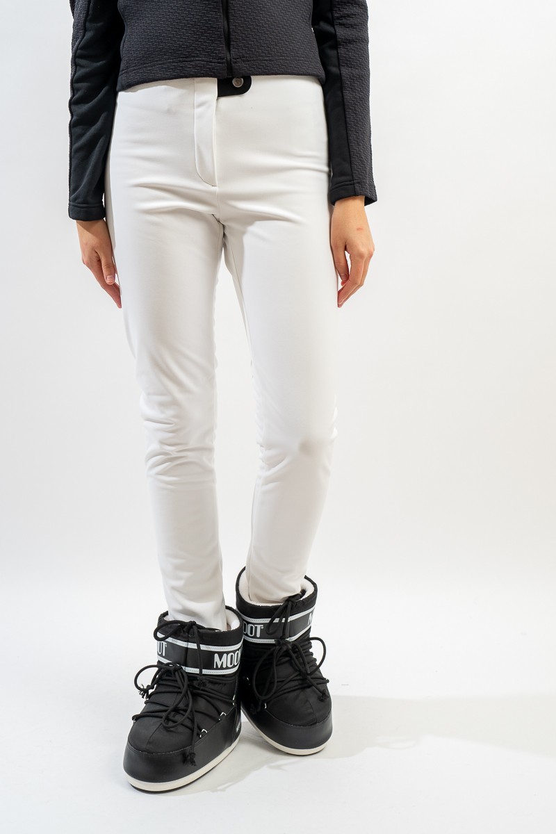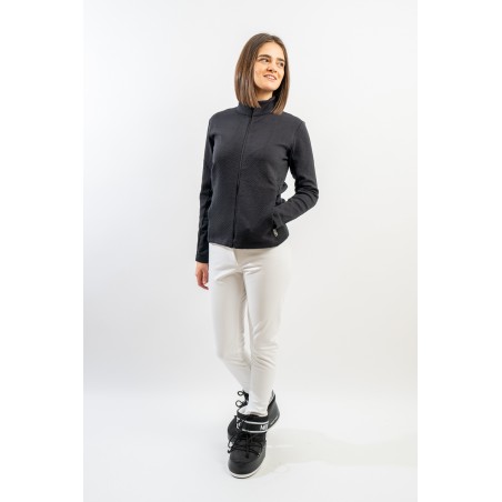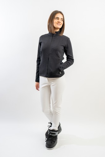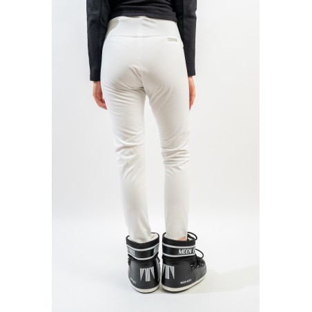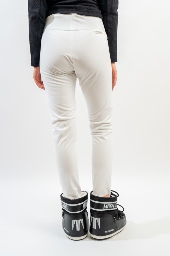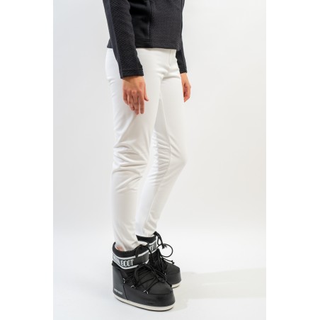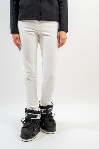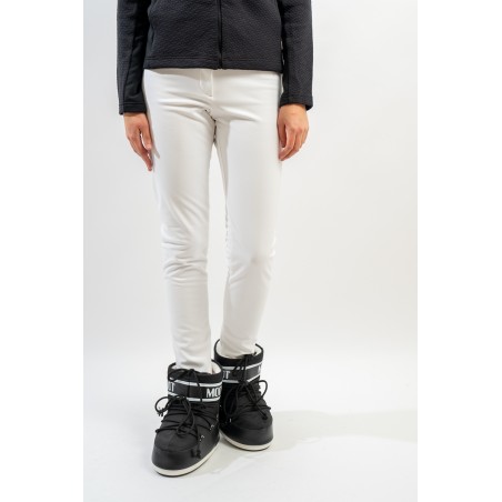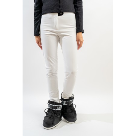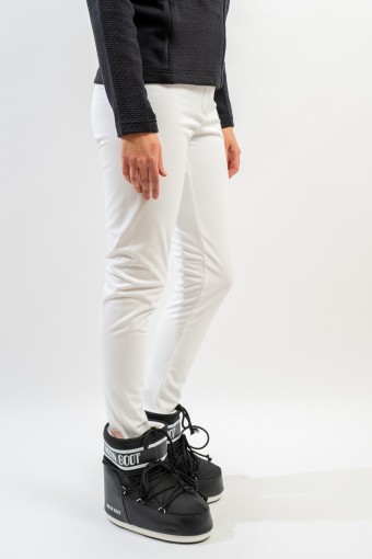 Softy trousers made of soft and elastic softshell coupled with a waterproof and breathable technical membrane. Comfortable and warm thanks to the fleece lining, it is ideal for excursions in the snow and for skiing with a retro chic taste.