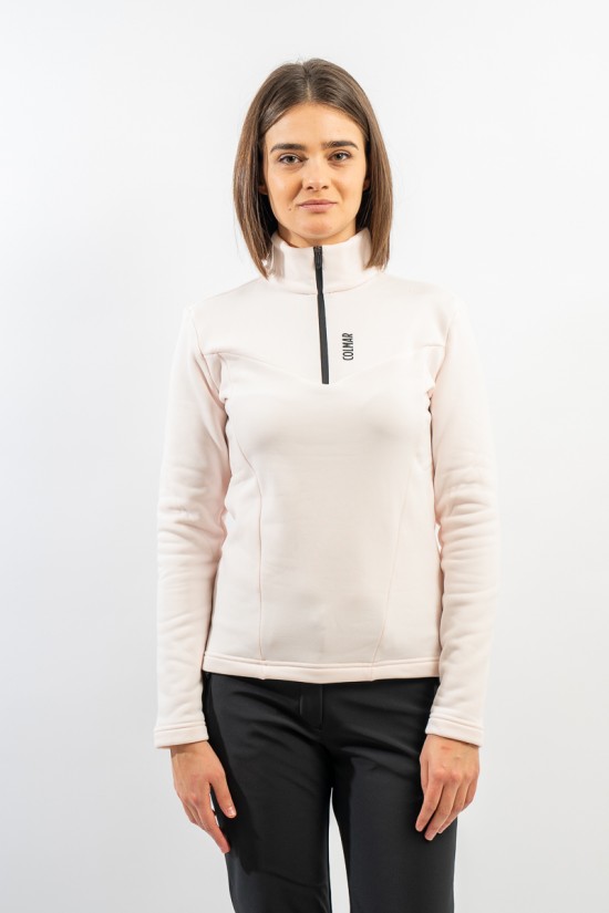 Half COLMAR zip undersuit made of Thermotec fabric, stretch and fleece. Warm, highly breathable and comfortable. Ideal under a ski jacket and for any outdoor sport.