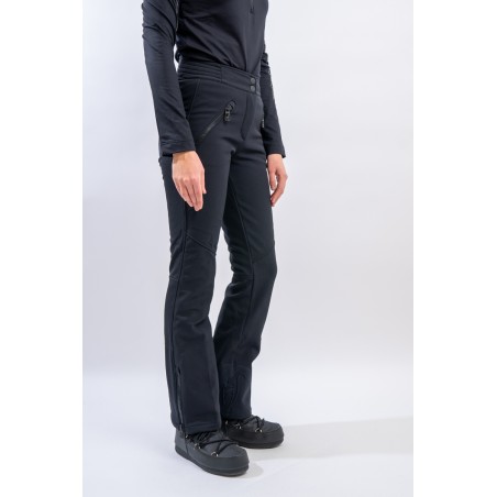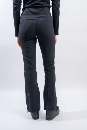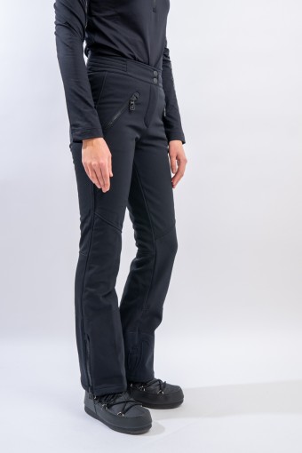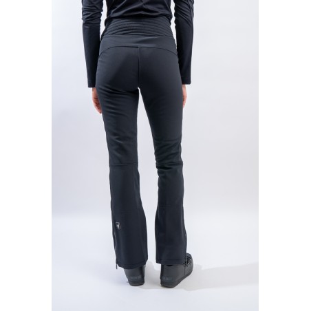 Ski pants Ella by TONI SAILER. Made of stretch fabric combined with the Dermizax membrane that guarantees waterproofness and breathability. Comfortable and soft thanks to the fleece lining, which gives a pleasant feeling of warmth, and the higher reinforced waist behind. The gaiter at the bottom ensures greater grip against wind and snow. The contoured seams perfectly draw the figure for optimal adaptability and fit. Perfect on the slopes and for a hike in the snow.