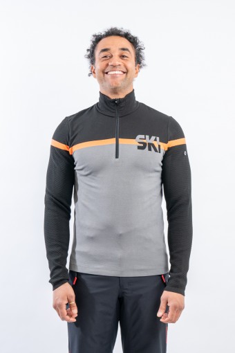 Half zip undersuit in DH-Tech 400 high performance fabric. Product made with a yarn based on extruded polypropylene characterized by a hollow thread internally. This unprecedented solution strictly Made in Italy makes the product compact and elastic for unparalleled comfort and wearability, just like a second skin.