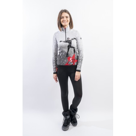 Half-zip undersuit in DH-Tech 400 high performance fabric that makes the garment extremely warm, insulating and breathable. Product made with an extruded polypropylene-based yarn characterized by a hollow thread internally. This new solution strictly Made in Italy makes the product compact and elastic for unparalleled comfort and fit, just like a second skin. Quick-drying, anti-odor and antibacterial.