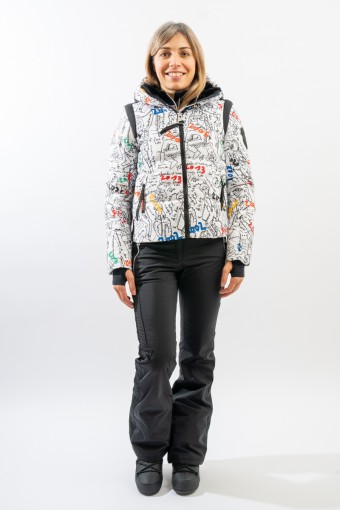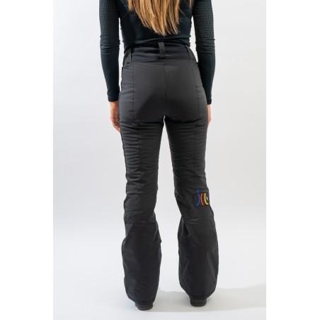 Stellar is the trousers of the line celebrating 20 years of collaboration between ROSSIGNOL and designer Jean-Charles de Castelbajac. The JCC logo, embroidered in the iconic color palette, matches the "20years together RCC" fabric bands on the length. The high waist, lined with soft fleece, and the elastic insert ensure optimal protection and comfort. Upholstered in soft wadding Primaloft is warm and suitable in all conditions.