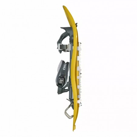 the ROCK snowshoe is a robust and versatile snowshoe, suitable for outdoor lovers in any condition. The grip is guaranteed on snow, mixed terrain or ice, thanks to the front crampon, the six crampons and the two side toothed blades giving the possibility, with a single tool, to face all the situations of the terrain. The waist shape of the Vespa, the rack and pinion closure of the ankle and the practical heel lift, increase comfort giving the opportunity to fully enjoy your adventures on the snow.