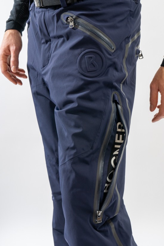 Tim2-T Pant is the BOGNER ski pants that meets the demands of the most demanding skier. Made of 4 way full stretch fabric allows maximum freedom of movement and the filling wadding gives unparalleled comfort. Highly waterproof and breathable, the thermo-welded seams and waterproof zips allow maximum protection from atmospheric agents. Functional and practical, it is perfect on snow even in the most extreme conditions.