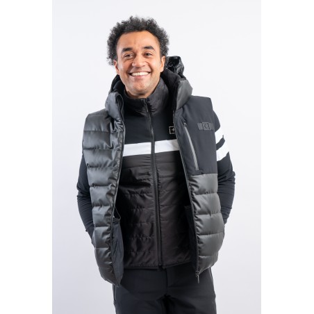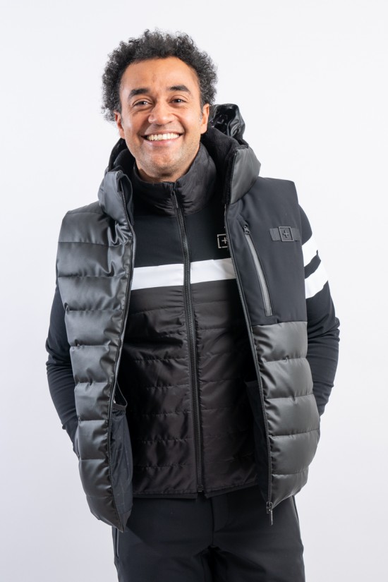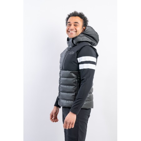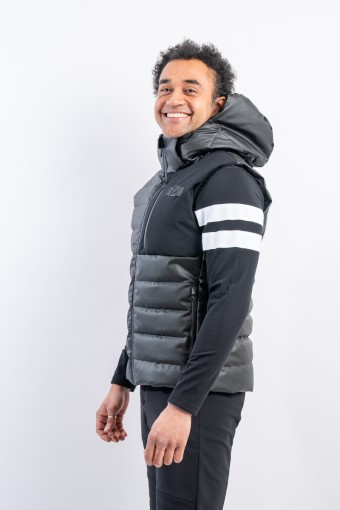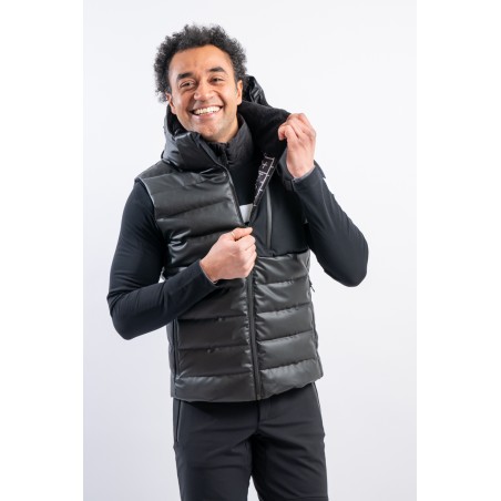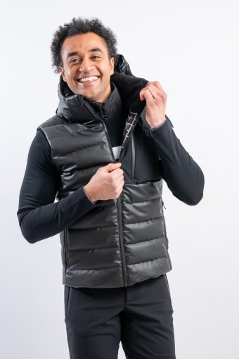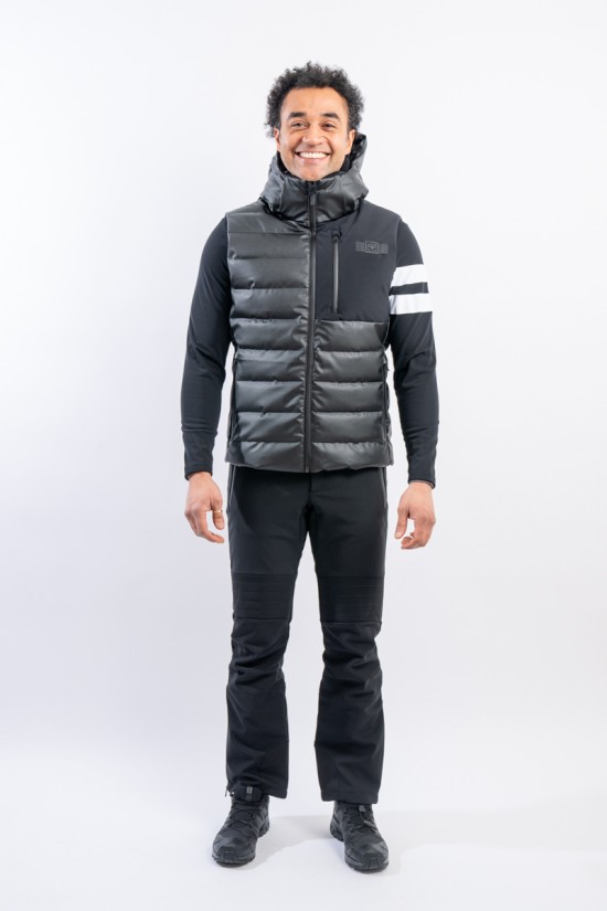Made of Appleskin, an eco-friendly material obtained from apple processing, which is water-resistant. Contemporary and original, the vest ONE MORE can be used on different occasions. As an additional layer or on its own. Padded with soft wadding, it is warm and light. The modern cut and stylish details make it the ideal complement to any look in the snow and in the city.