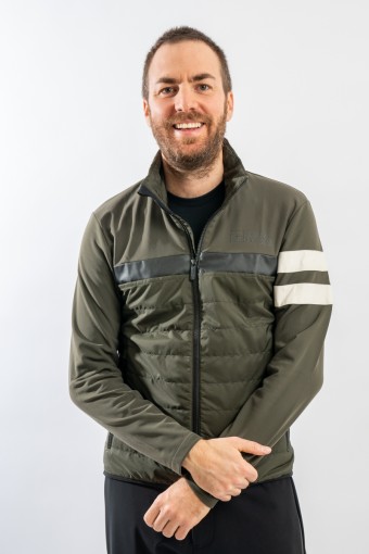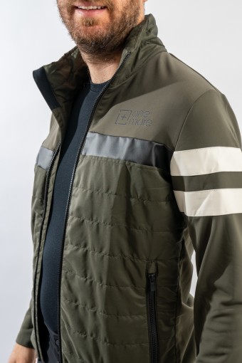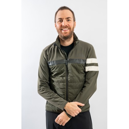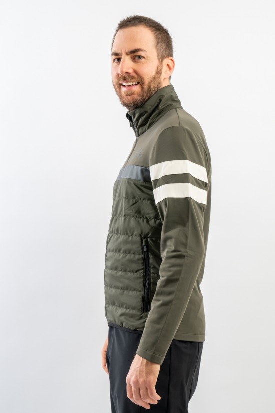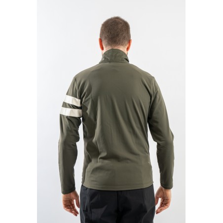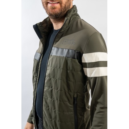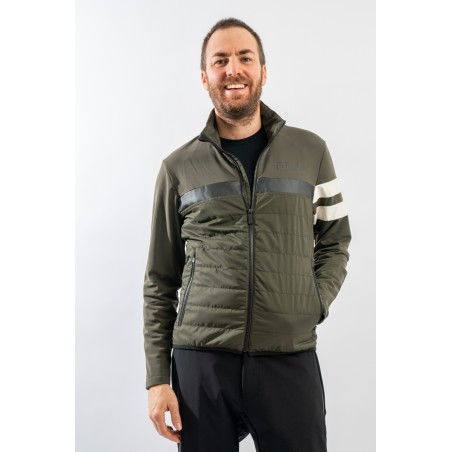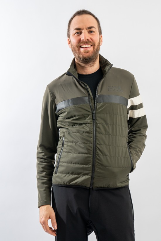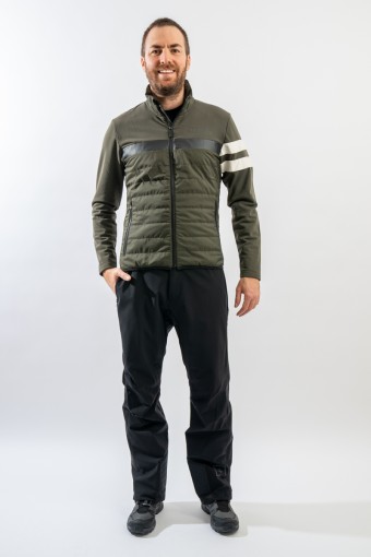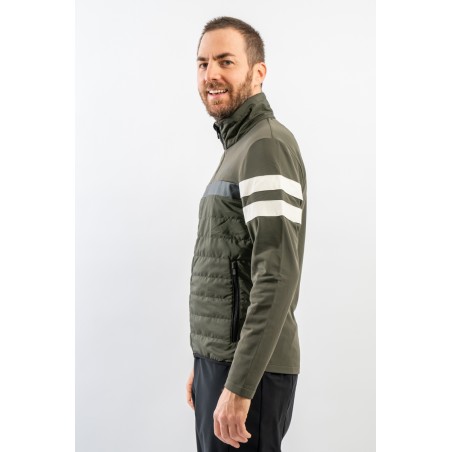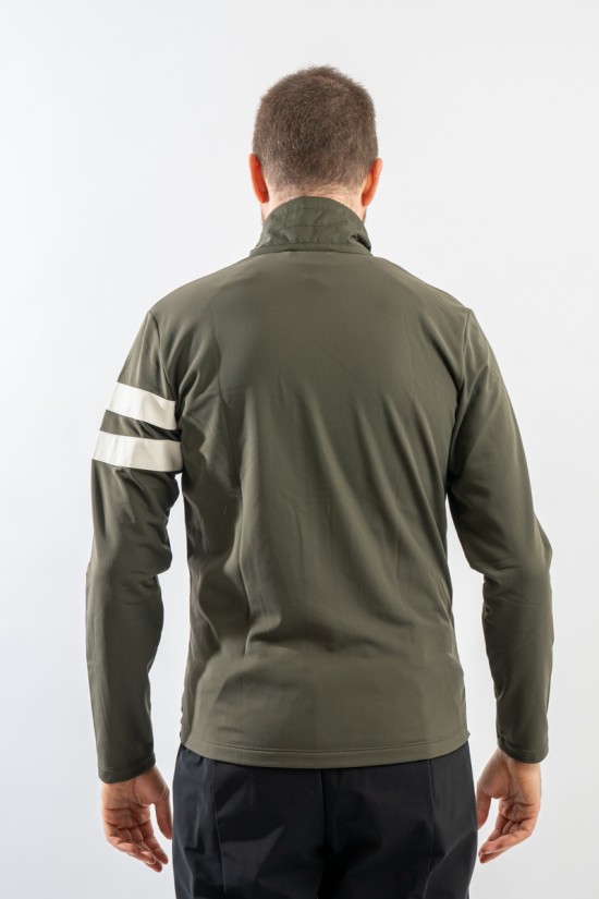 Full zip undersuit made of stretch fleece with Econyl regenerated yarn. Breathable and warm, it is lightly padded with cotton wool in the lower part of the torso and on the neck. Featuring the distinctive contrasting details of the brand, it is ideal for outdoor sports or as a under jacket.