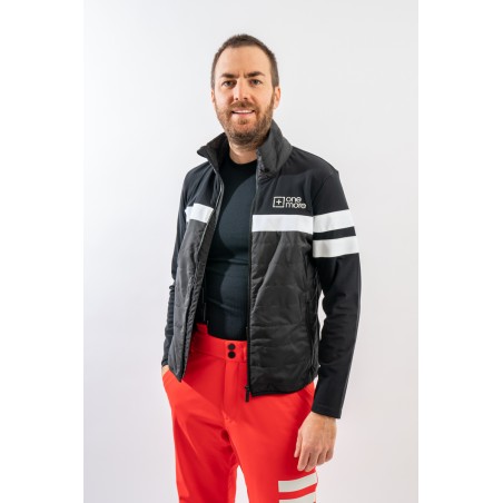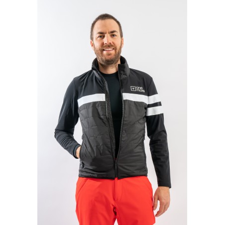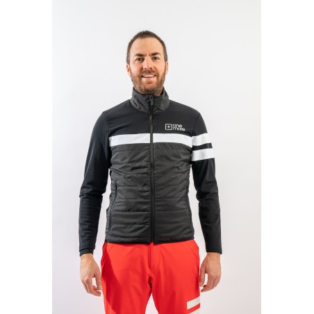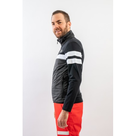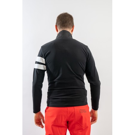 Full zip undersuit made of stretch fleece with Econyl regenerated yarn. Breathable and warm, it is lightly padded with cotton wool in the lower part of the torso and on the neck. Featuring the distinctive contrasting details of the brand, it is ideal for outdoor sports or as a under jacket.