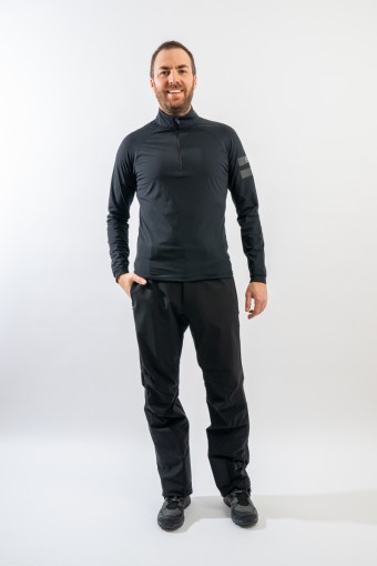 Half-zip undersuit made of stretch micro fleece with Econyl regenerated yarn. Breathable and warm. Featuring distinctive brand details printed on the sleeve, it is ideal for outdoor sports or as under jacket.