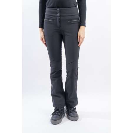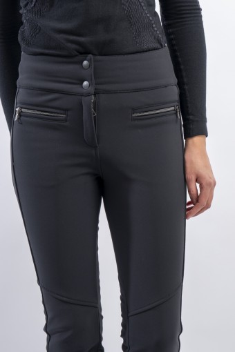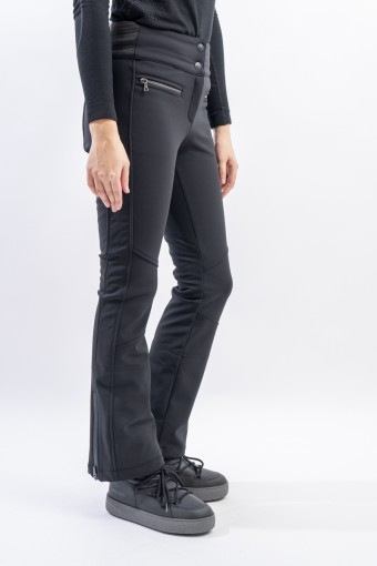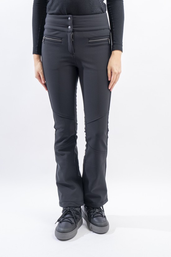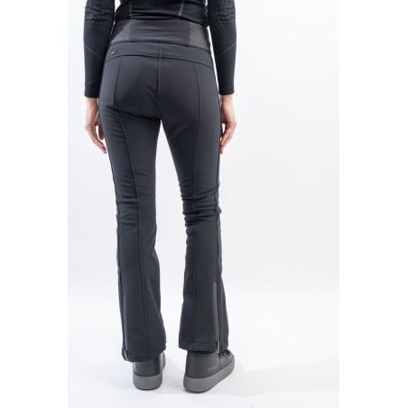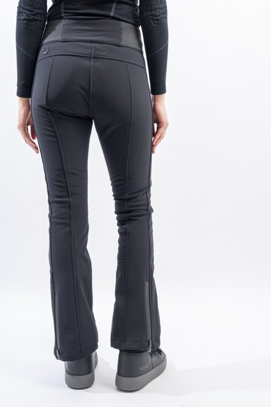 Ski pants in stretch fabric, water and wind resistant, breathable and comfortable. High at the waist, it is complete with elastic bands that increase its adaptability and improve fit. Slim fit. The visible seams, shaped, draw the figure enhancing its shape. Lined internally in fleece, it is warm and perfect on snow even on the coldest days.