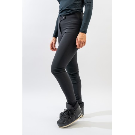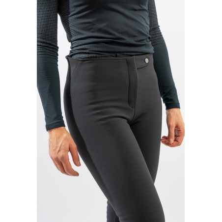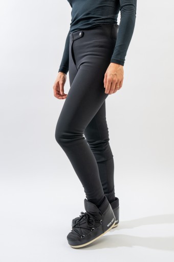Ski pants in stretch fabric, water and wind resistant, breathable and comfortable. High at the waist, the internal elastic band increases its adaptability. Slim fit. Internally lined with fleece, it is warm and perfect for any adventure in the snow, even on the coldest days.