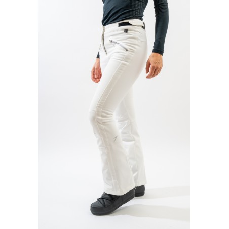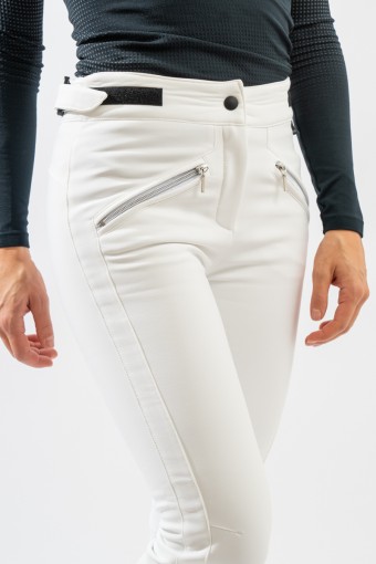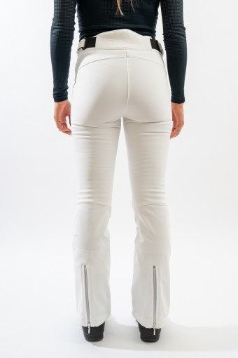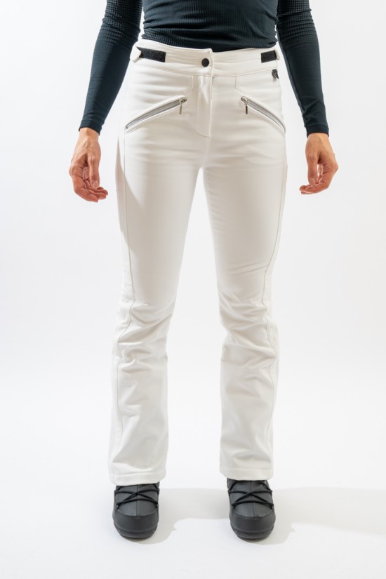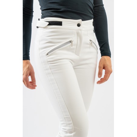 Trousers in soft stretch fabric. Water and wind resistant, it is breathable and comfortable. Tall and shaped at the waist, it is complete velcro adjustment that increases its adaptability. Lined internally in fleece, it is warm and perfect on snow even on the coldest days.