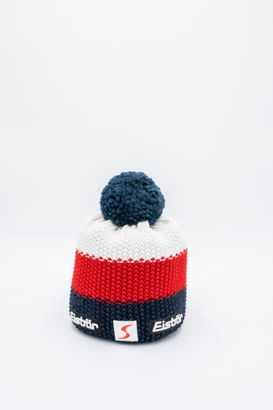 Warm and enveloping, it is made of 50% merino wool. Fun thanks to the tricolor yarn and the contrasting pompom. Eisbär, in the field of skiing and aprè-ski since the 50s, is appreciated by skiers and not for the craftsmanship of the garments and their perfect fit.