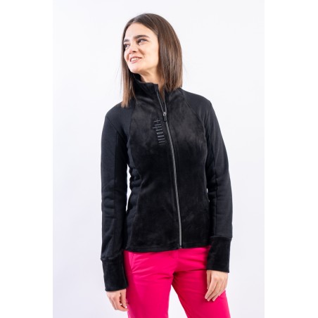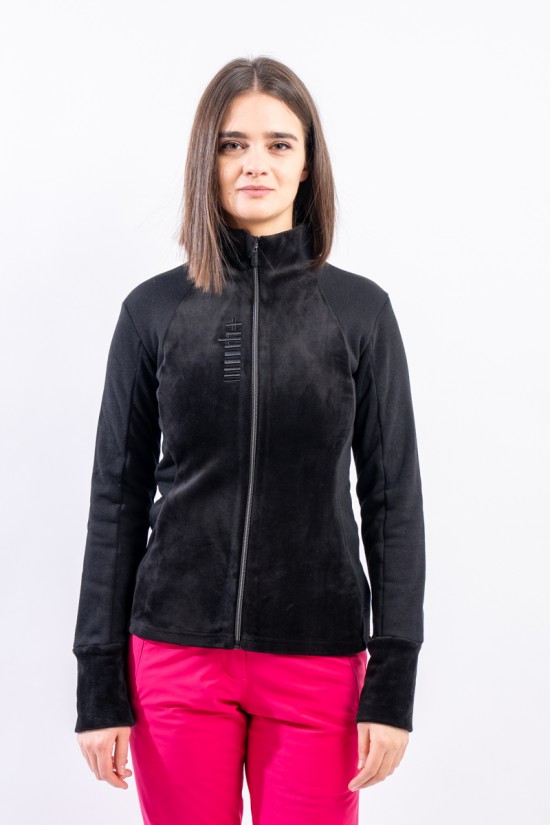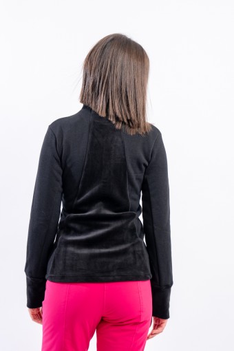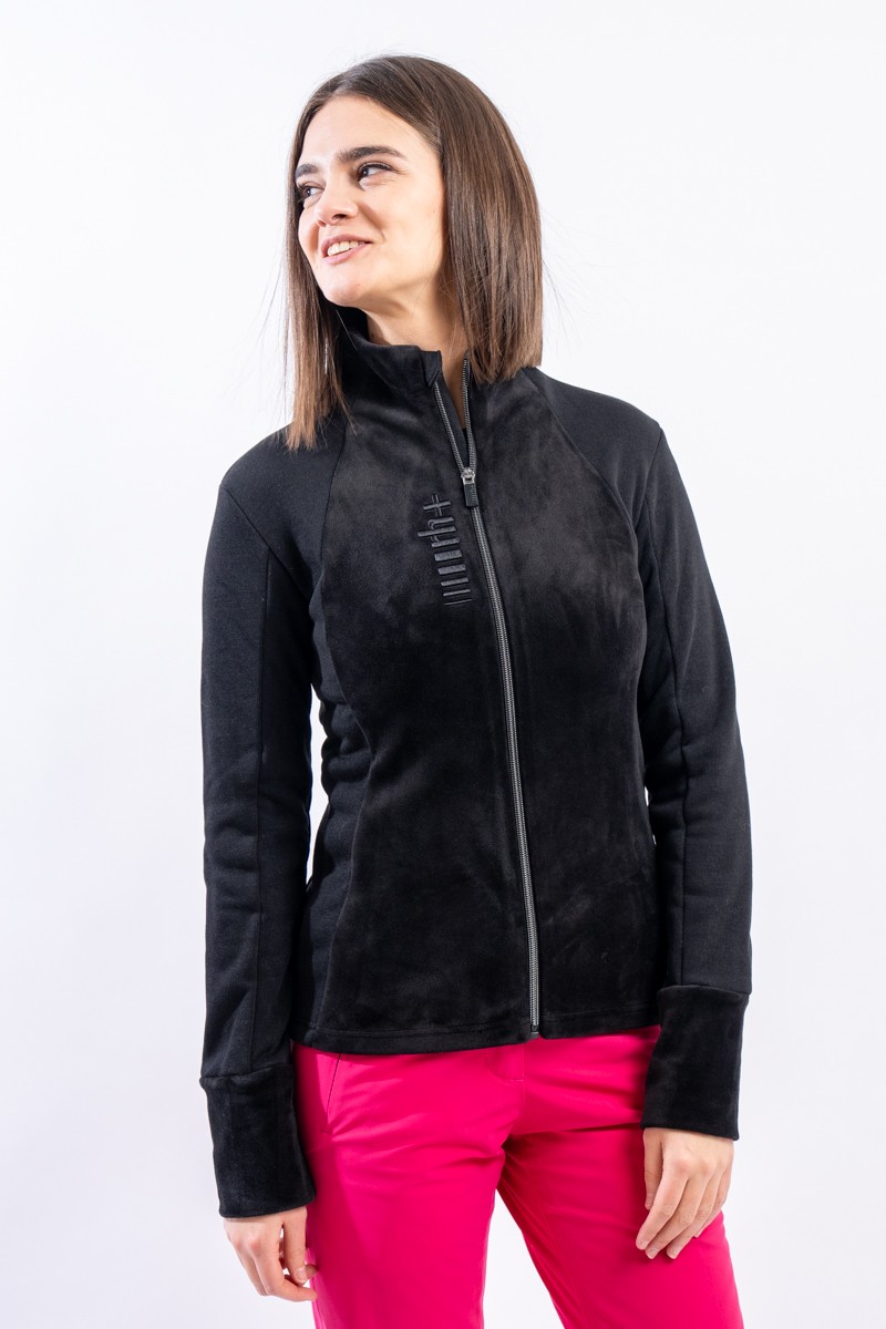 The ribbed technical fabric on the sleeves and sides alternates with the chenille-effect fabric on the central part, for a sporty yet versatile look. Soft and pleasant to the touch, it is warm and breathable. Ideal under the jacket and for outdoor sports.