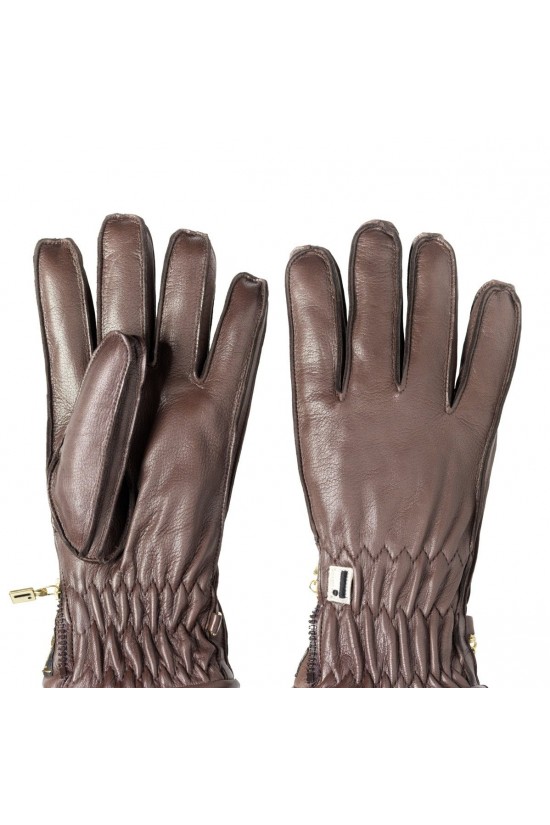 Precious and elegant ski gloves RESTELLI made of deer and entirely lined with lamb. Perfect for facing cold days on snow. Warm and comfortable, characterized by the uniqueness of Made in Italy signed RESTELLI.