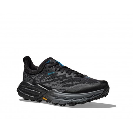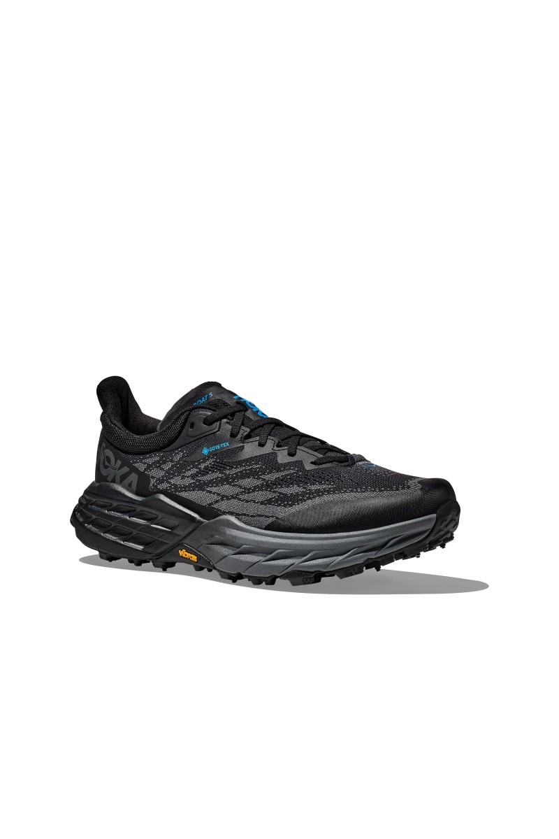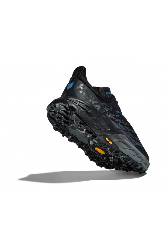Men's Speedgoat 5 GTX version, revisited from the sole to the laces. Built with Vibram Megagrip Traction Lug to offer even better grip and excellent braking even on muddy terrain. Upper built with dynamic material and with a Gore-tex membrane that makes it waterproof, wraps the foot perfectly and gives flexibility and thrust, ensuring comfort even with swollen feet. Ideal for off-road running and light trekking. The only flaw? They are addictive!