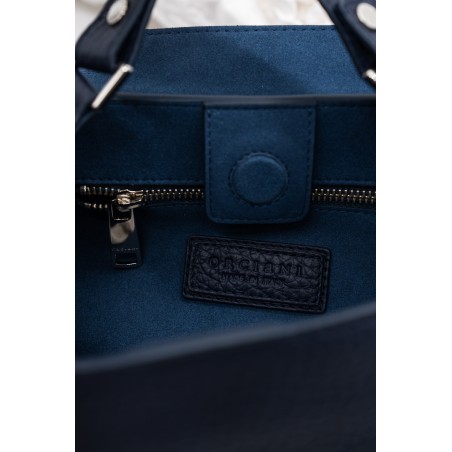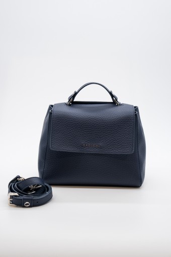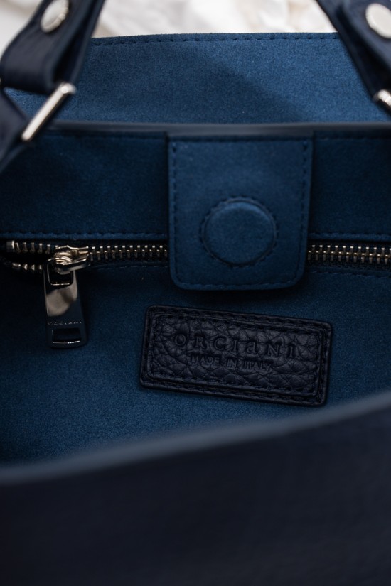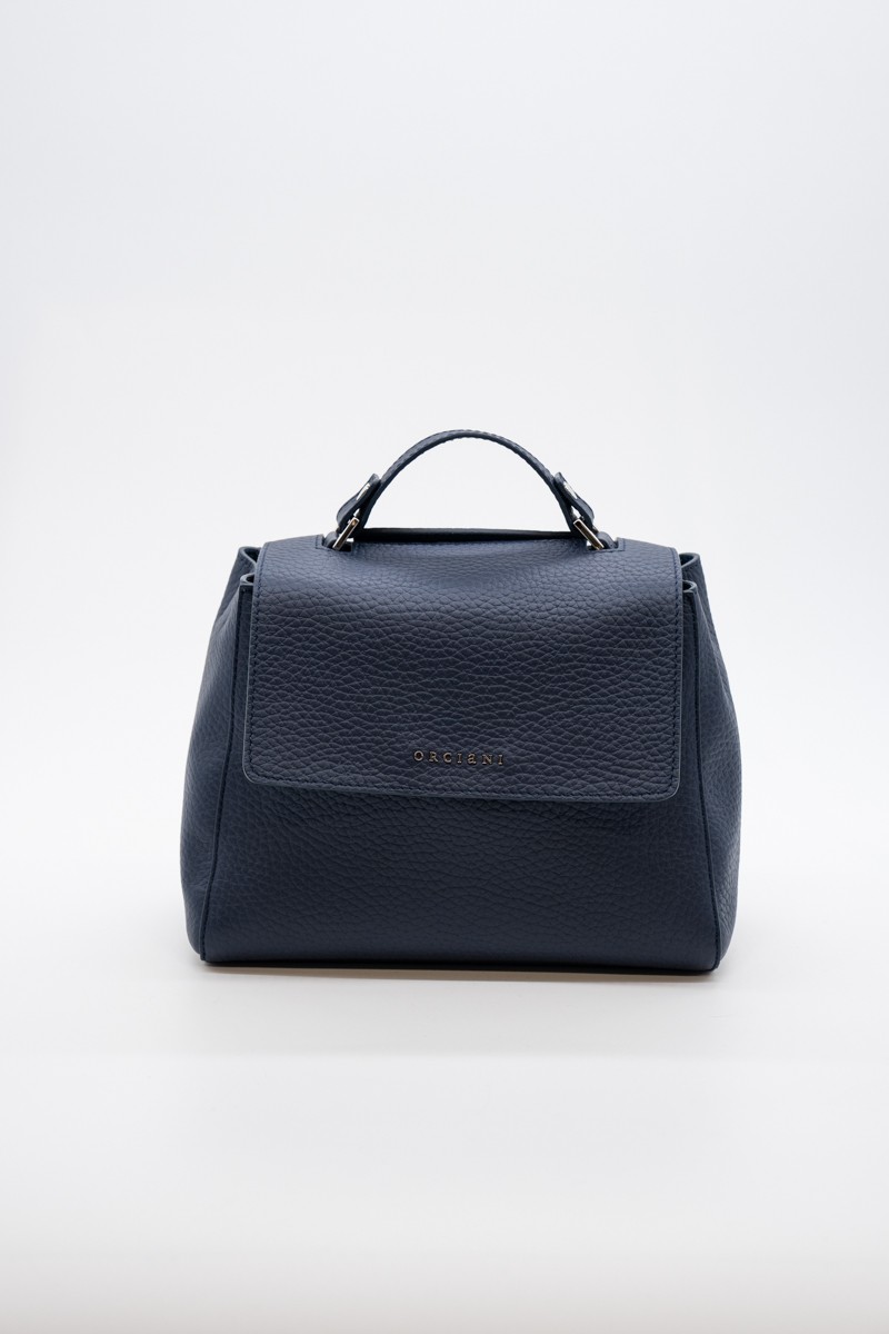 An icon of the ORCIANI world: the Sveva handbag or crossbody bag in the small size. Made of soft grained leather with precious shiny metal details. A practical shoulder strap is supplied. Magnetic button closure. Interior zip pocket. Made in Italy.
