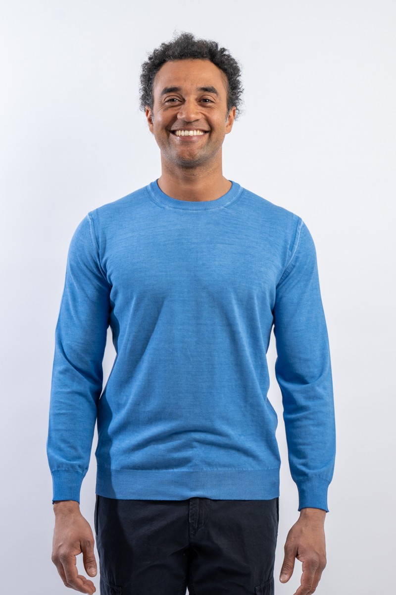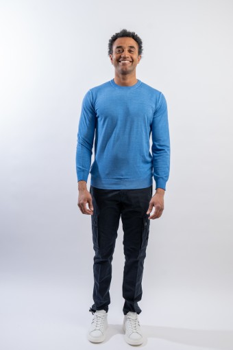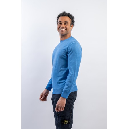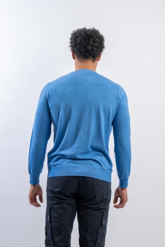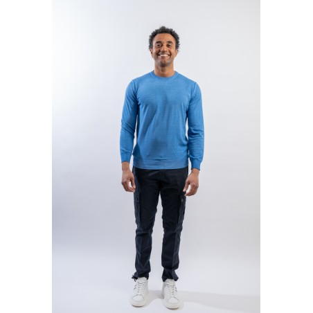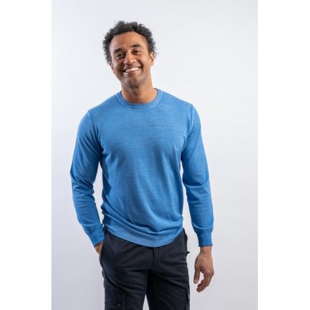 Crewneck sweater in 100% cotton with Stone treatment. 14 gauge stockinette stitch and slim fit. Ribbed cuffs, collar and hem. Made in Italy.