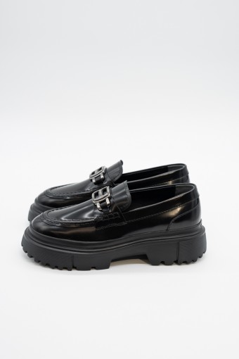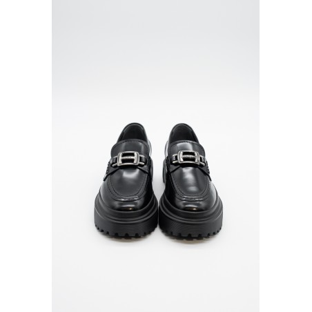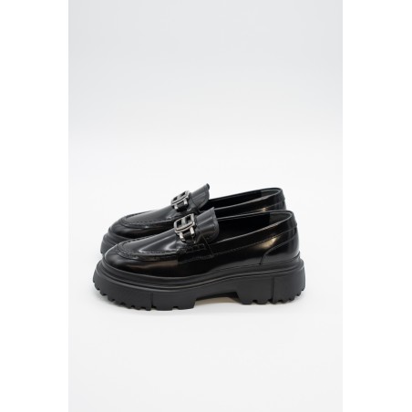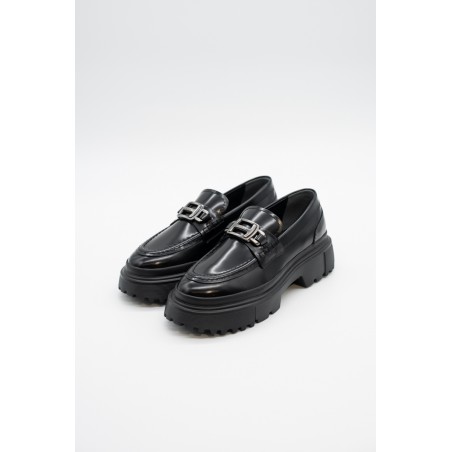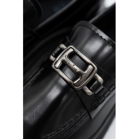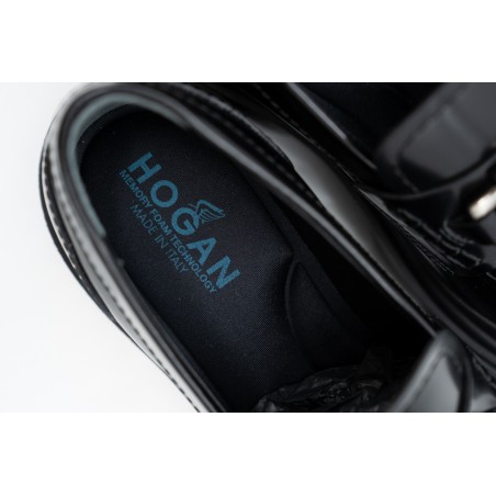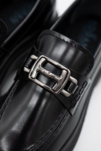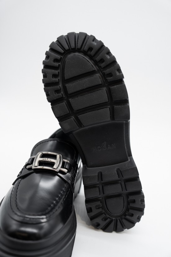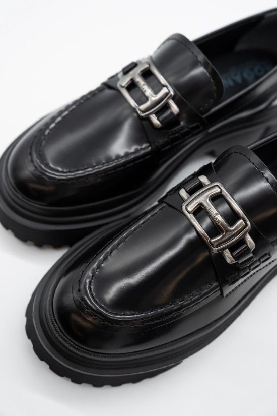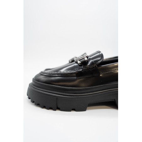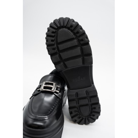 The H619 loafer by HOGAN turns out to be the new must-have of contemporary urban style. Made of abrasive leather with a mask and unmistakable H in shiny metal on the front. With an elegant line strongly contrasting with the sturdy Eva lug sole embellished with striped details. Lightness and style ... within walking distance.