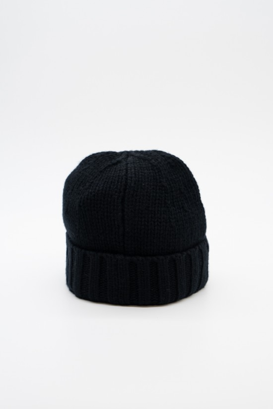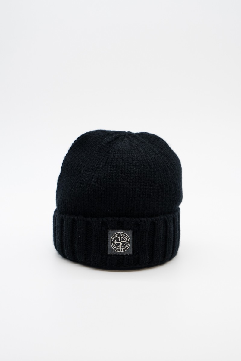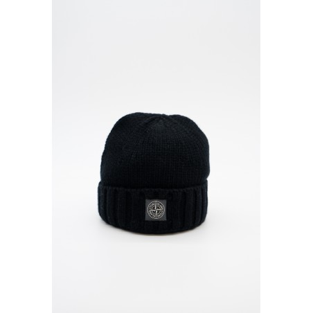 Stone Island beanie made of 100% Geelong wool with stockinette stitch. The flat ribbed lapel is embellished with the Rosa dei Venti patch STONE ISLAND appliqué.