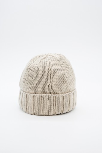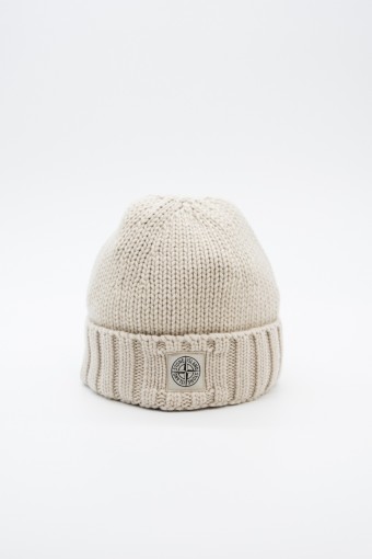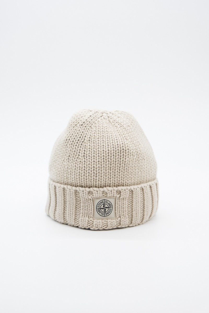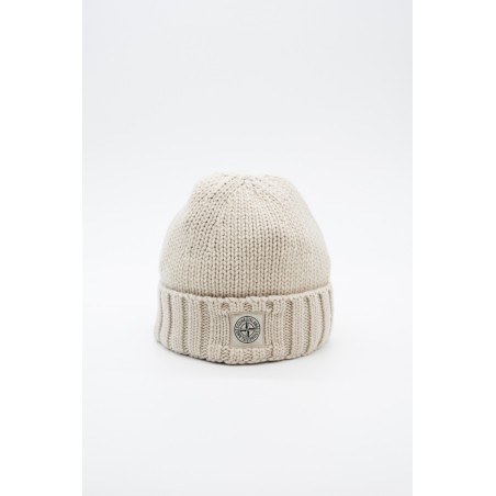 Stone Island beanie made of 100% Geelong wool with stockinette stitch. The flat ribbed lapel is embellished with the Rosa dei Venti patch STONE ISLAND appliqué.