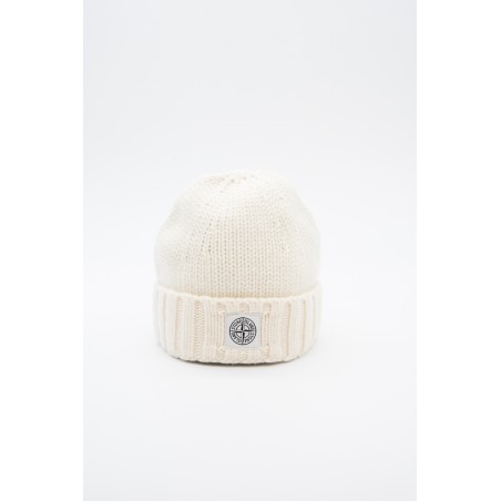 Stone Island beanie made of 100% Geelong wool with stockinette stitch. The flat ribbed lapel is embellished with the Rosa dei Venti patch STONE ISLAND appliqué.