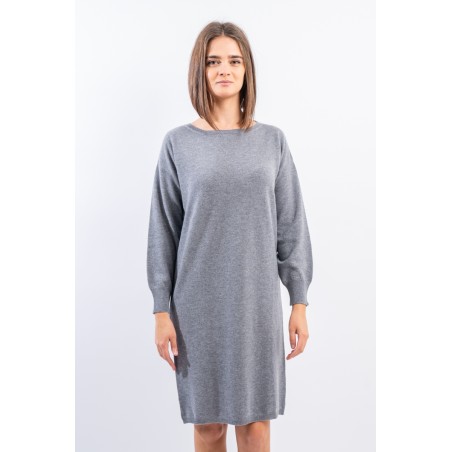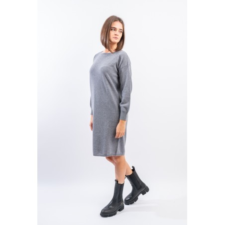 Knitted dress with stockinette stitching. Crew neck and long sleeves, it has an essential and versatile line that adapts to any occasion. Made in Italy.