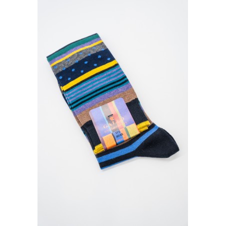 Long socks made of soft cotton, original but recognizable with polka dots and multicolored stripes. Band, heel and toe with matching colors. They are the perfect socks to match with any look. Gallo is Made in Italy quality and excellence since 1927.