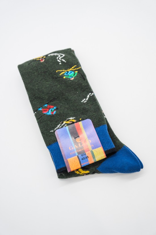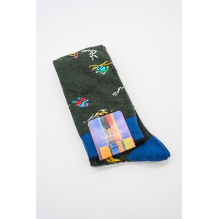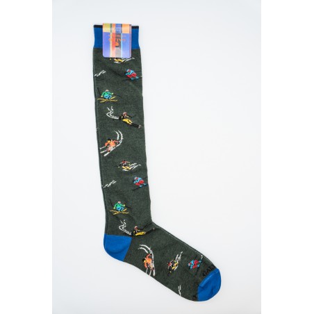 Long socks made of stretch cotton, with embroidered skiers. Band, heel and toe with contrasting colors. They are the perfect socks to match with any look. Gallo is Made in Italy quality and excellence since 1927.