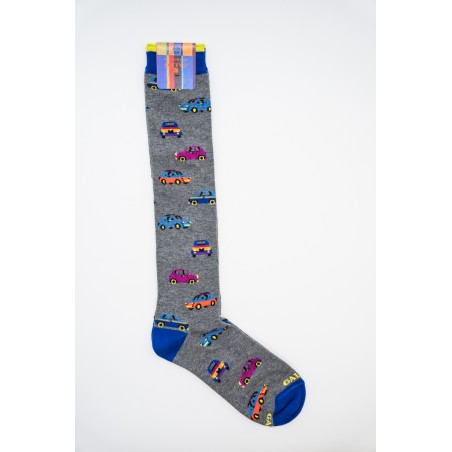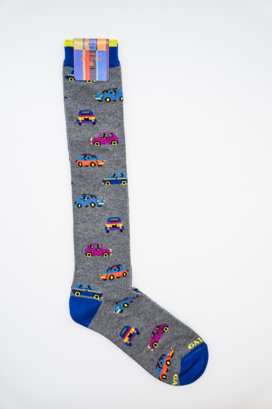 Long socks made of light cotton, with small embroidered cars. Heel and toe with contrasting colors. They are the perfect socks to match with any look. Gallo is Made in Italy quality and excellence since 1927.