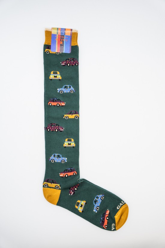 Long socks made of light cotton, with small embroidered cars. Heel and toe with contrasting colors. They are the perfect socks to match with any look. Gallo is Made in Italy quality and excellence since 1927.