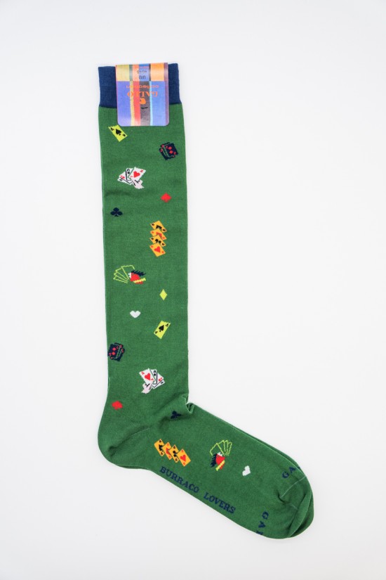 Long socks made of lightweight cotton, with small embroidered playing cards. Band, heel and toe with contrasting colors. They are the perfect socks to match with any look. Gallo is Made in Italy quality and excellence since 1927.