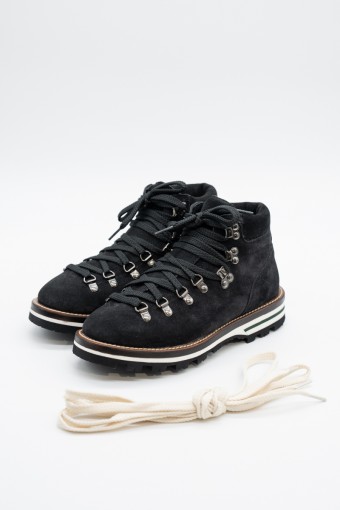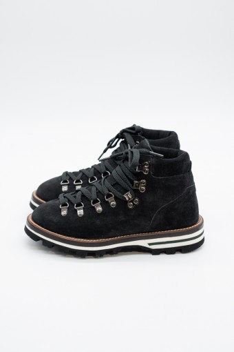Mon Piz is the brand that takes inspiration from the Alpine peaks, creates handcrafted and 100% Made in Italy its products. The Cortina model is made of suede, we offer it in black. Perfect for the mountains thanks to its vibram sole and leather welt, it is also ideal for the city with its elongated and elegant design. Born from the encounter between urban style and classic mountain MON PIZ it is the perfect footwear in all conditions and situations. Every detail encompasses craftsmanship and Italian quality for the new must-have of the present and future winter!