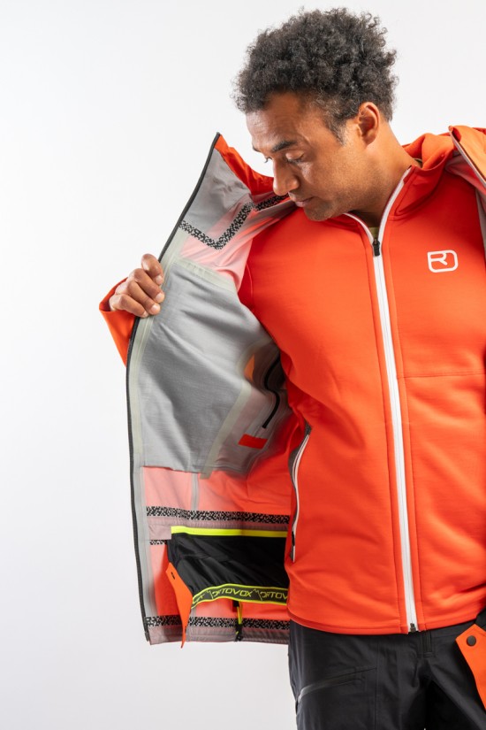 3L DEEP SHELL JACKET soft and lightweight, ergonomic design to allow maximum freedom of movement. Built with DERMIZAX EV membrane, suitable for extreme and prolonged conditions, it favors waterproofing, thermal insulation and wind resistance. Merino wool insert in the most sensitive areas. Ideal for Freeride and all intense activities. ORTOVOX WOOL PROMISE.