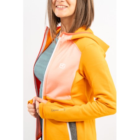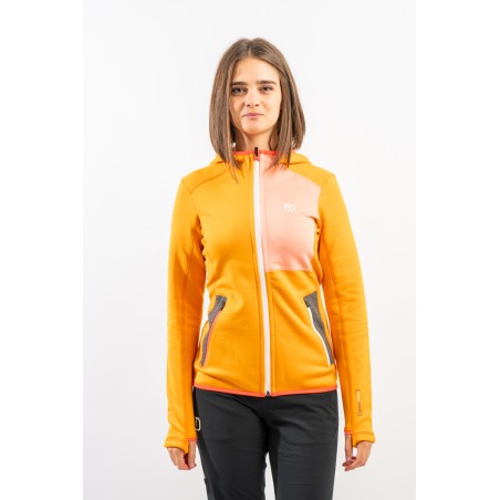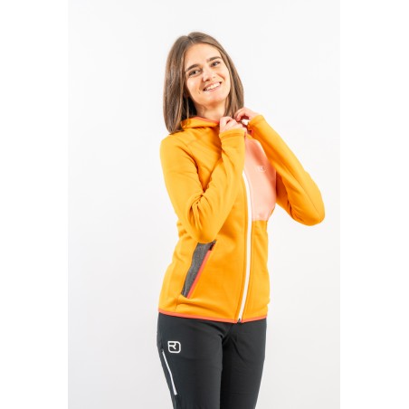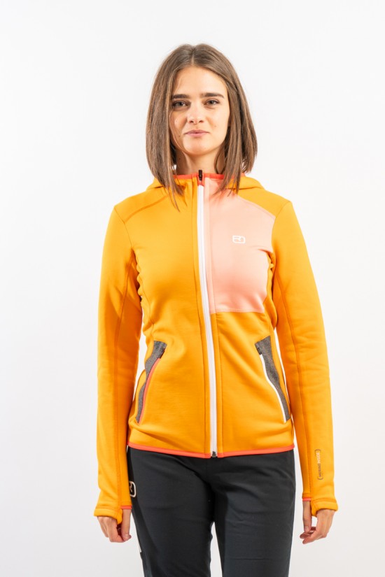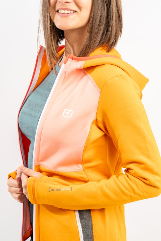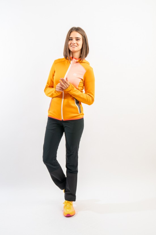 The new version of the FLEECE HOODY is even more comfortable, adapts optimally to the body and offers maximum freedom of movement thanks to its elasticity. It is an extremely versatile garment that ensures high functionality and optimal temperature. The combination of soft wool on the inside and polyester on the outside makes it particularly durable and breathable. ORTOVOX WOOL PROMISE.