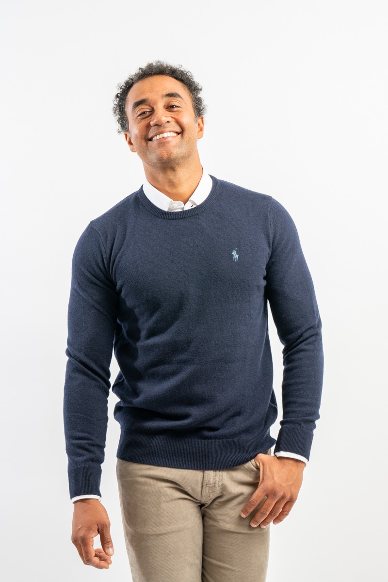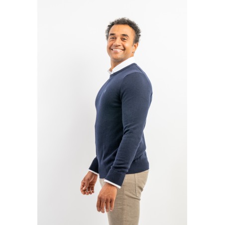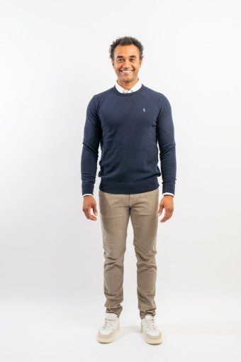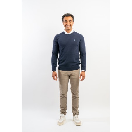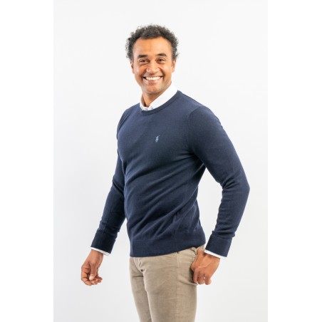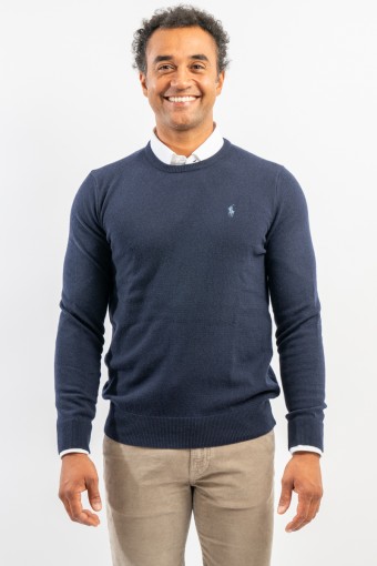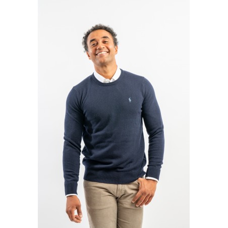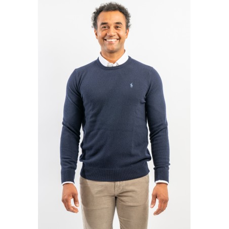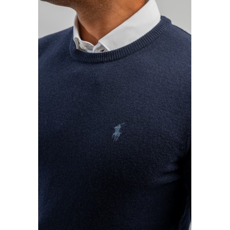 Classic crewneck sweater, solid color, in fine merino wool with iconic label embroidered on the chest. Line POLO RALPH LAUREN.