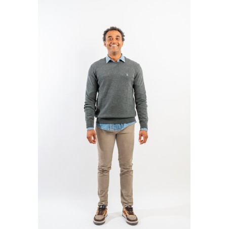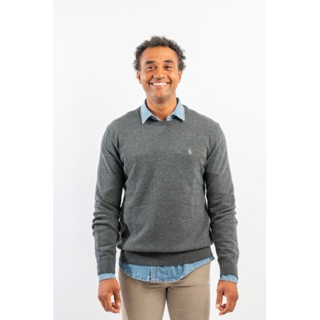 Classic crewneck sweater, solid color, in fine merino wool with iconic label embroidered on the chest. Line POLO RALPH LAUREN.