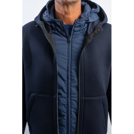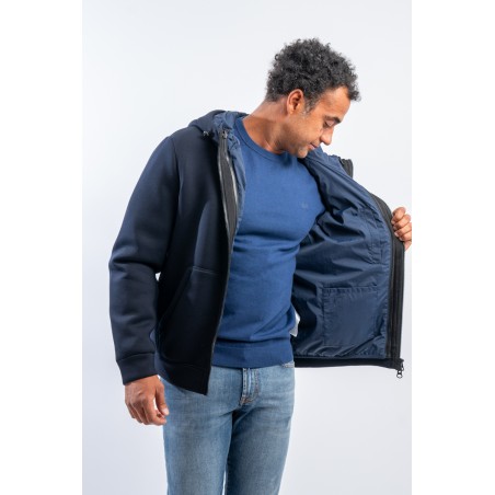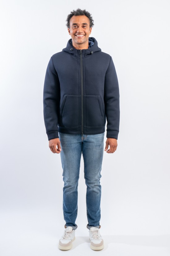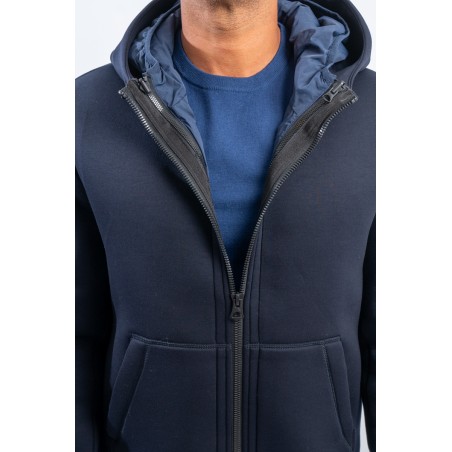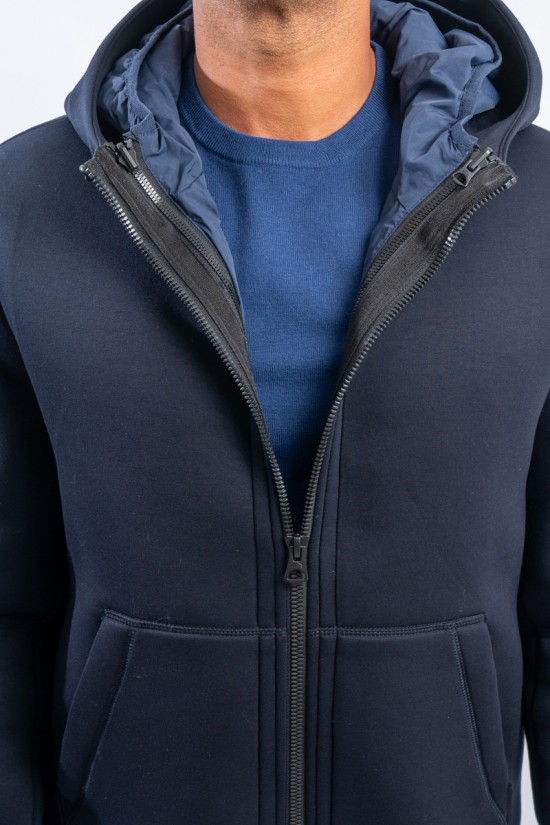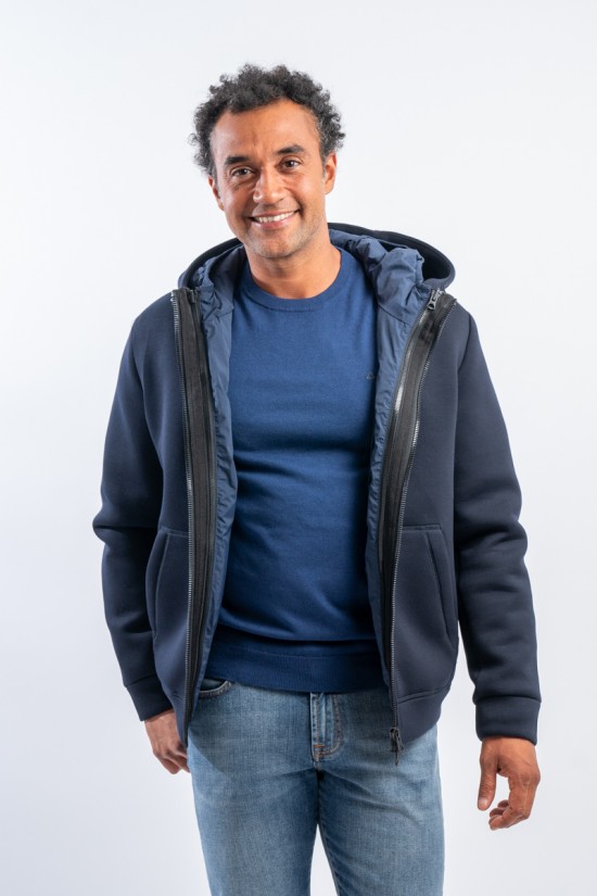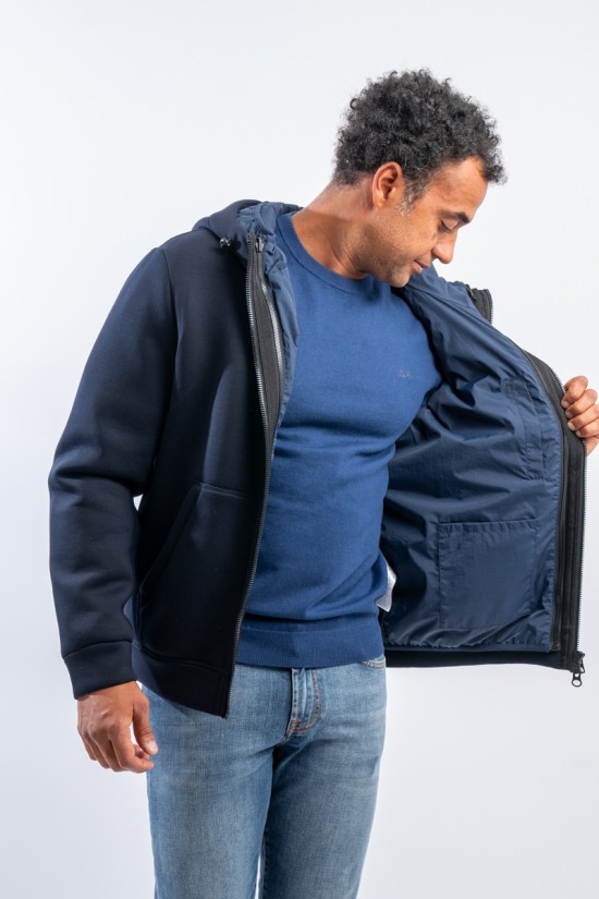 Bomber jacket model for the practical and dynamic FORTOWN garment: three different outfits. Two jackets that can be easily detached and reassembled by zip and snap. The windproof and water-repellent outer layer and the lightly padded inner layer ensure protection and comfort in all weathers.